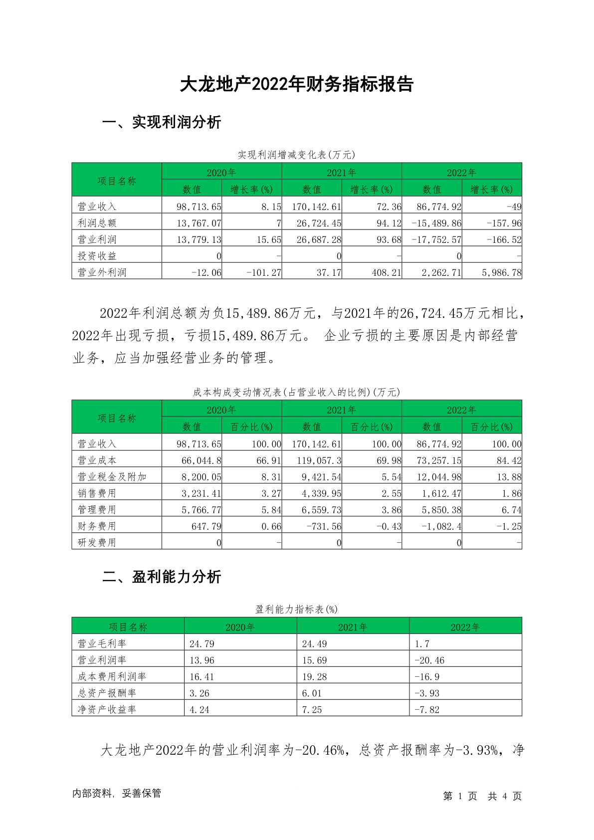 600159大龙地产2022年财务指标报告
