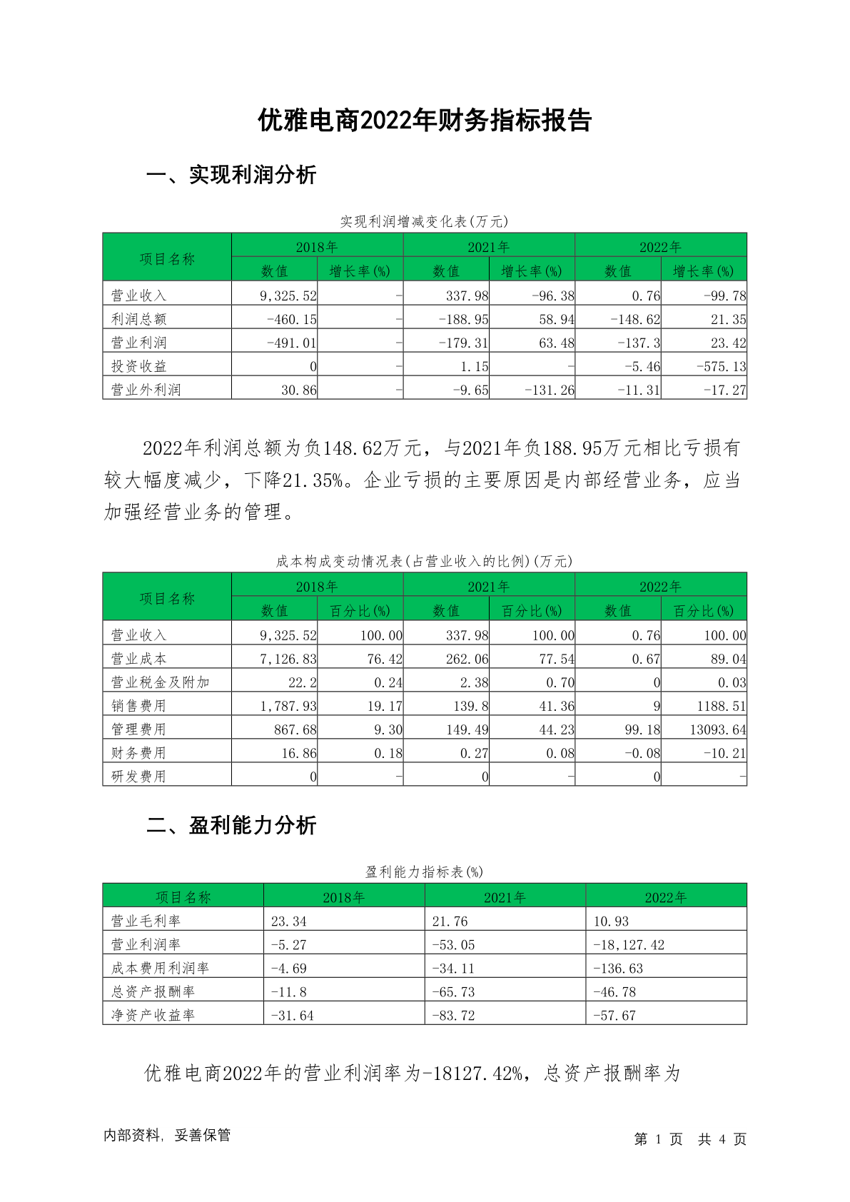 836093优雅电商2022年财务指标报告