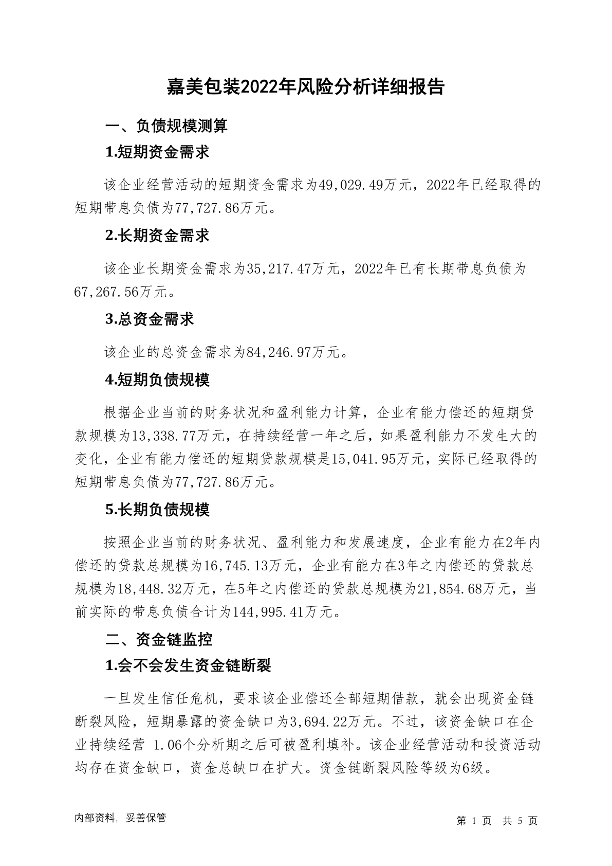 002969嘉美包装2022年财务风险分析详细报告
