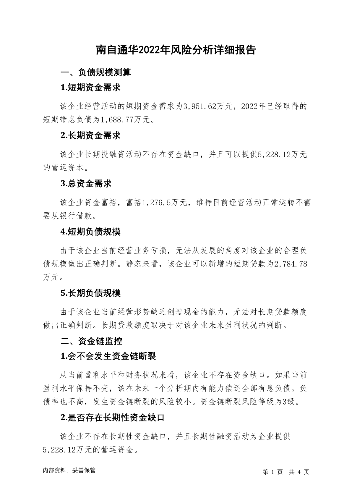 837864南自通华2022年财务风险分析详细报告