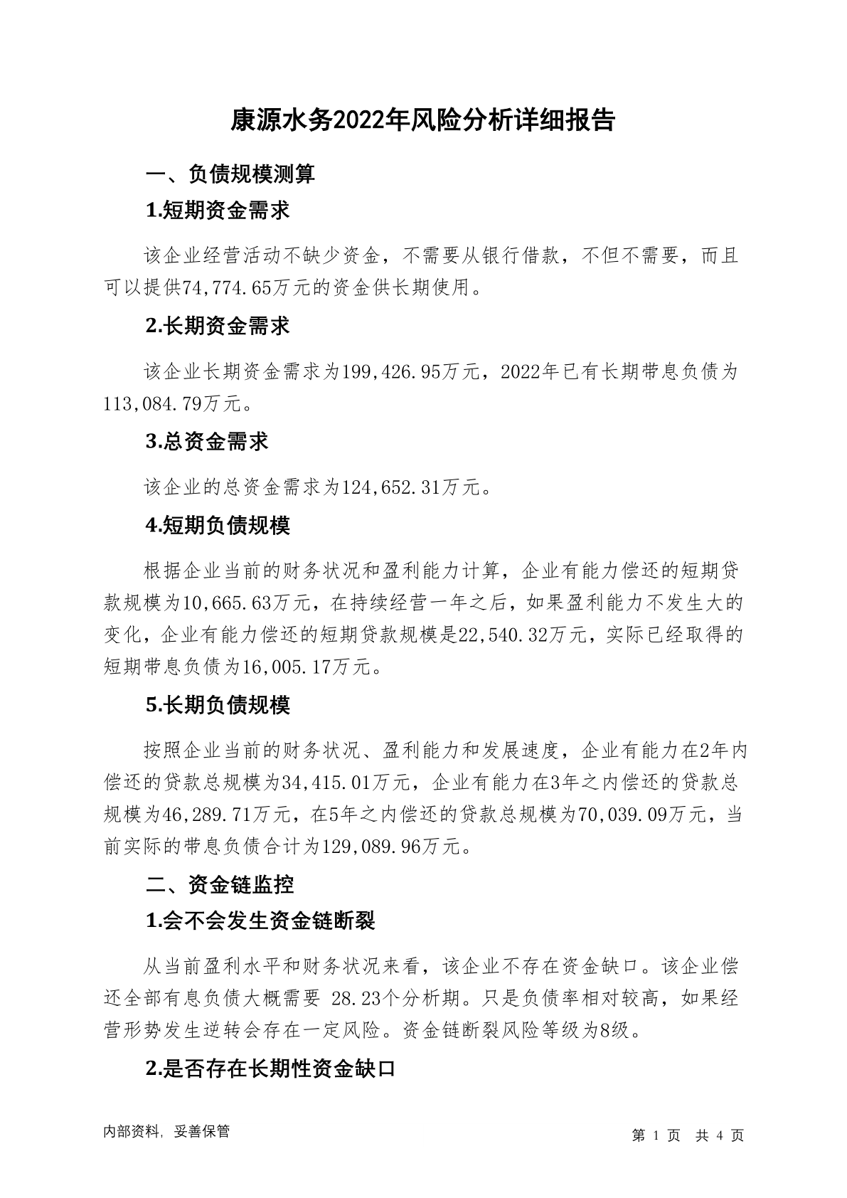 873734康源水务2022年财务风险分析详细报告