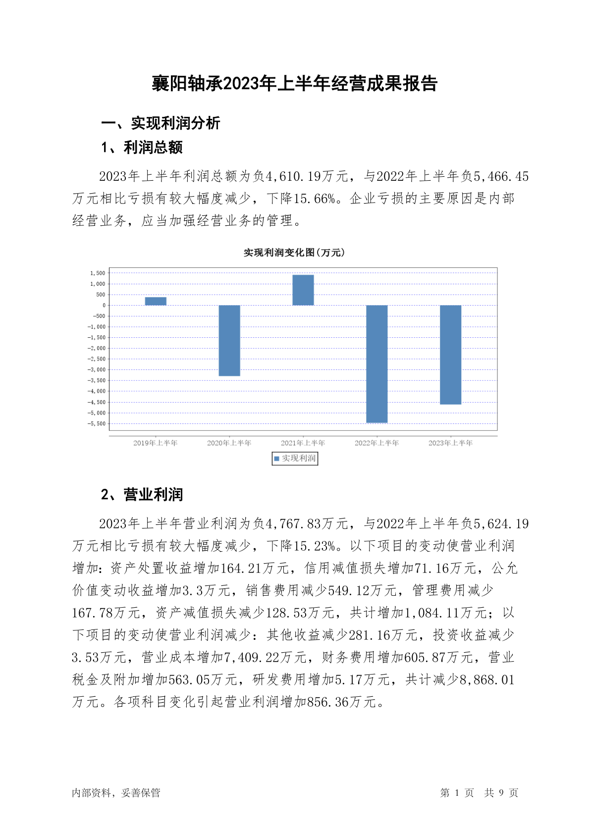000678襄阳轴承2023年上半年经营成果报告