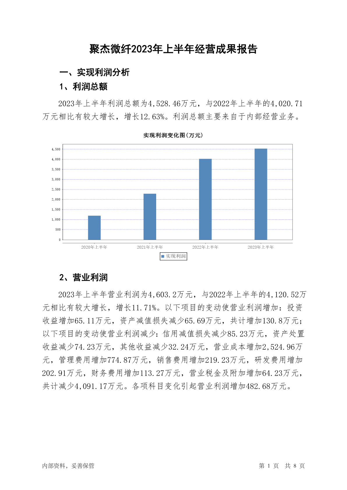 300819聚杰微纤2023年上半年经营成果报告