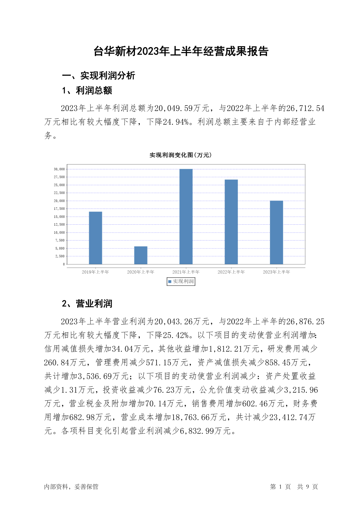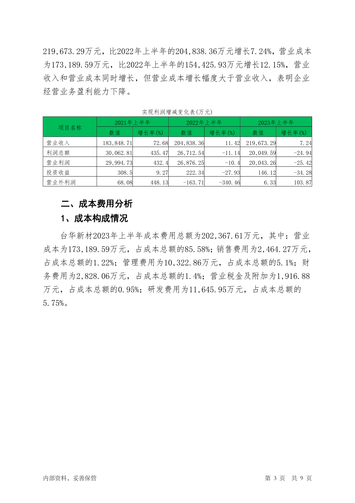 603055台华新材2023年上半年经营成果报告