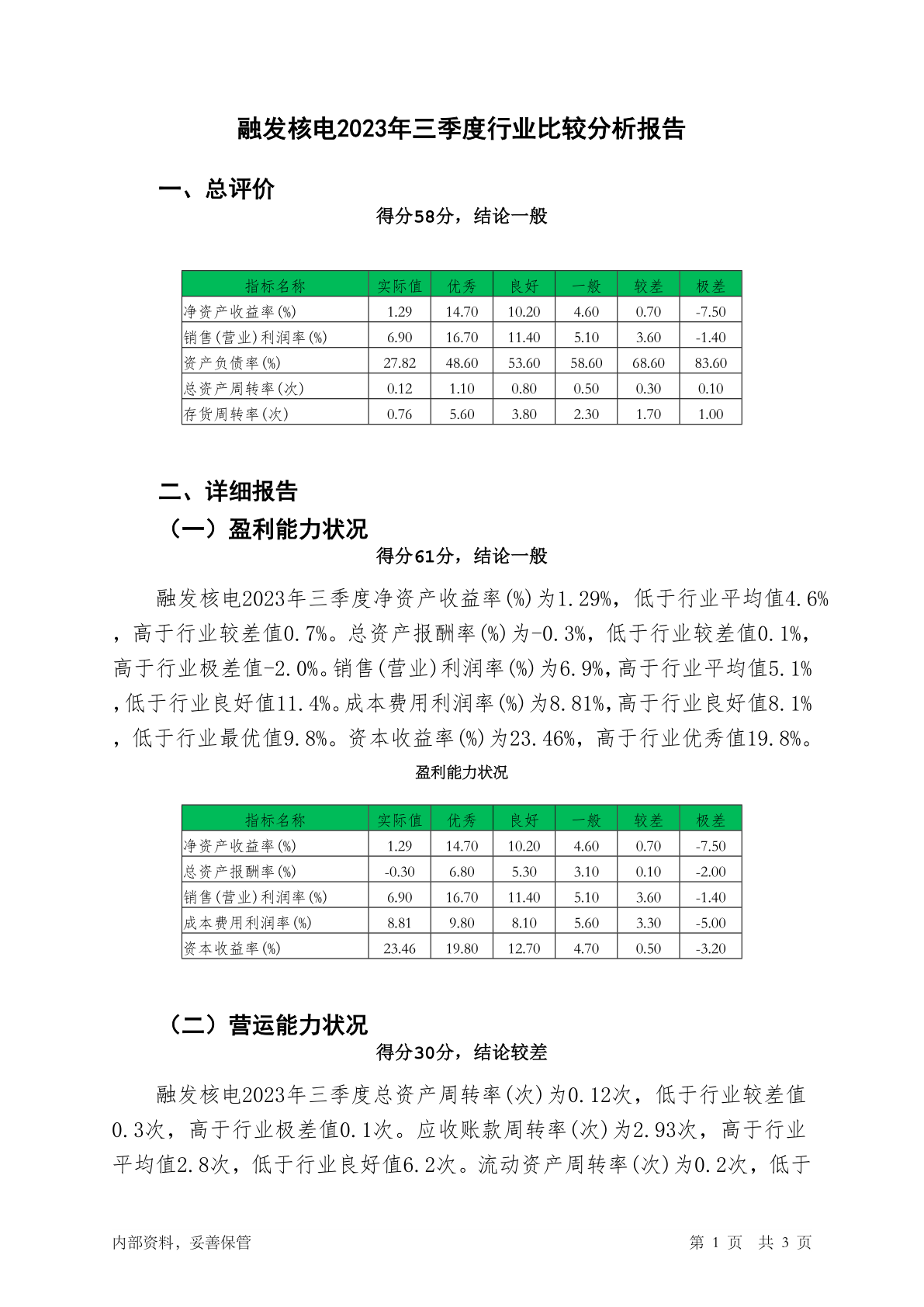 002366融发核电2023年三季度行业比较分析报告