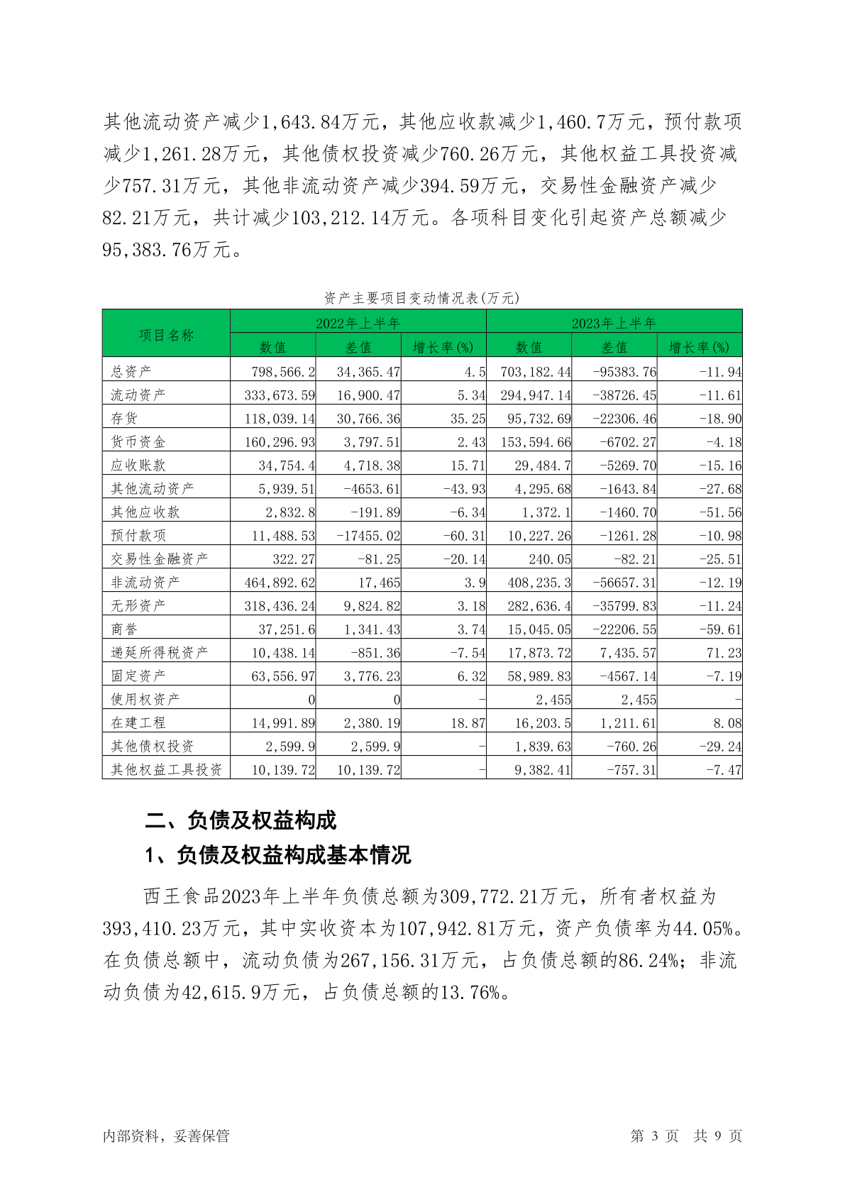 000639西王食品2023年上半年财务状况报告