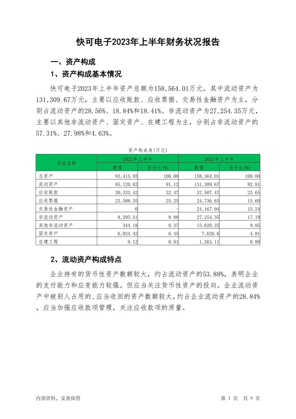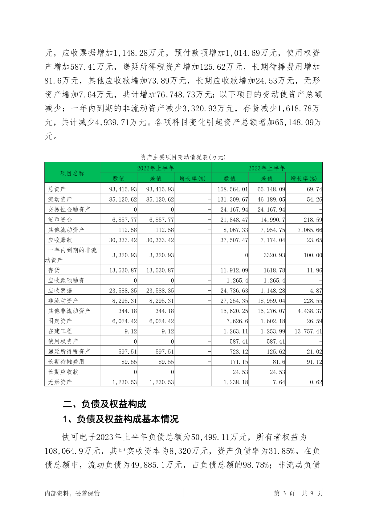 301278快可电子2023年上半年财务状况报告