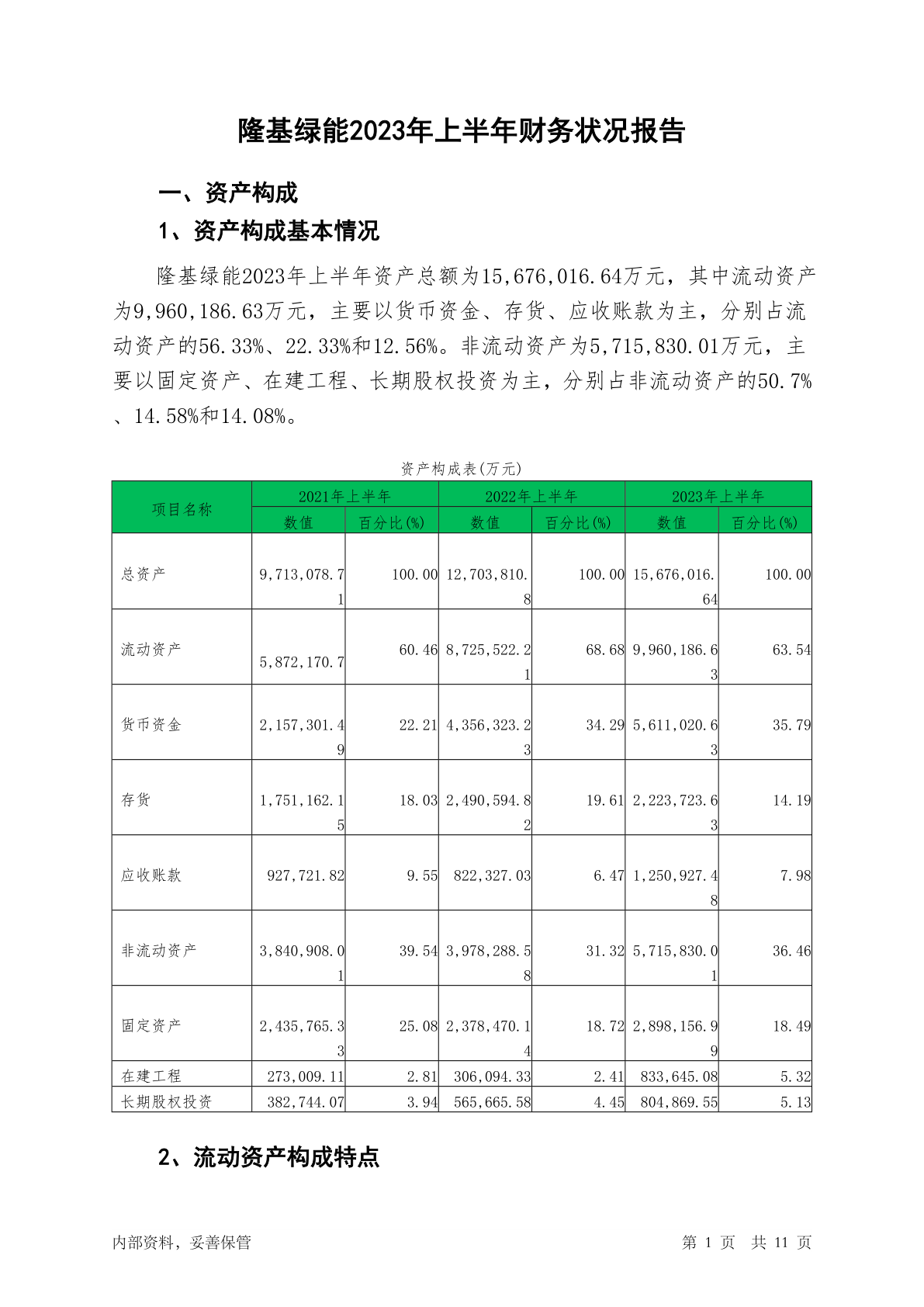 601012隆基绿能2023年上半年财务状况报告