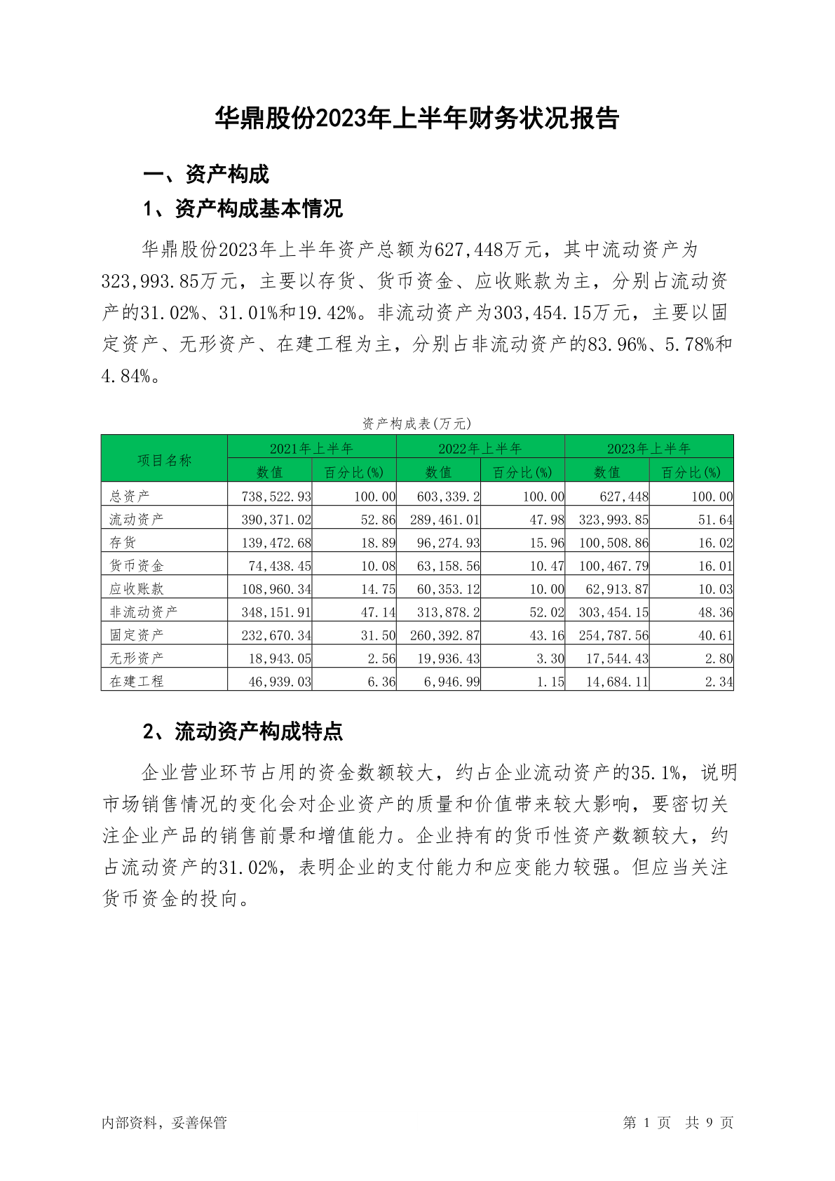 601113华鼎股份2023年上半年财务状况报告