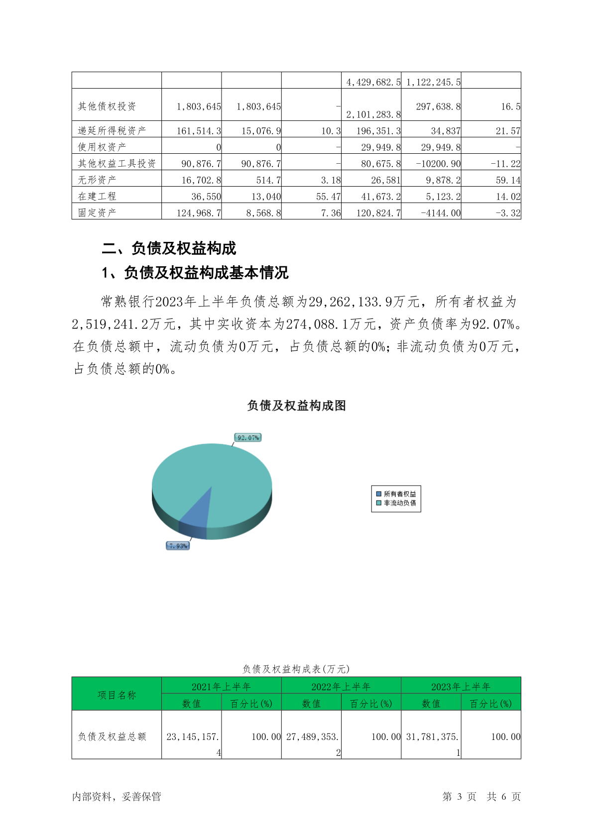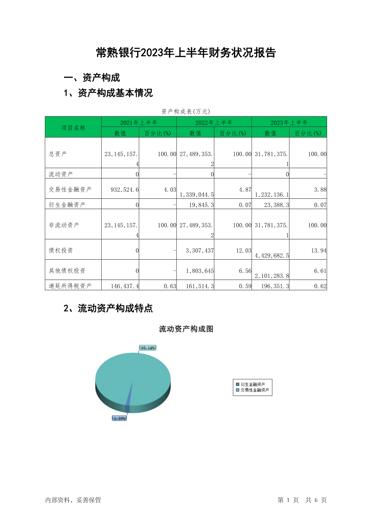 601128常熟银行2023年上半年财务状况报告