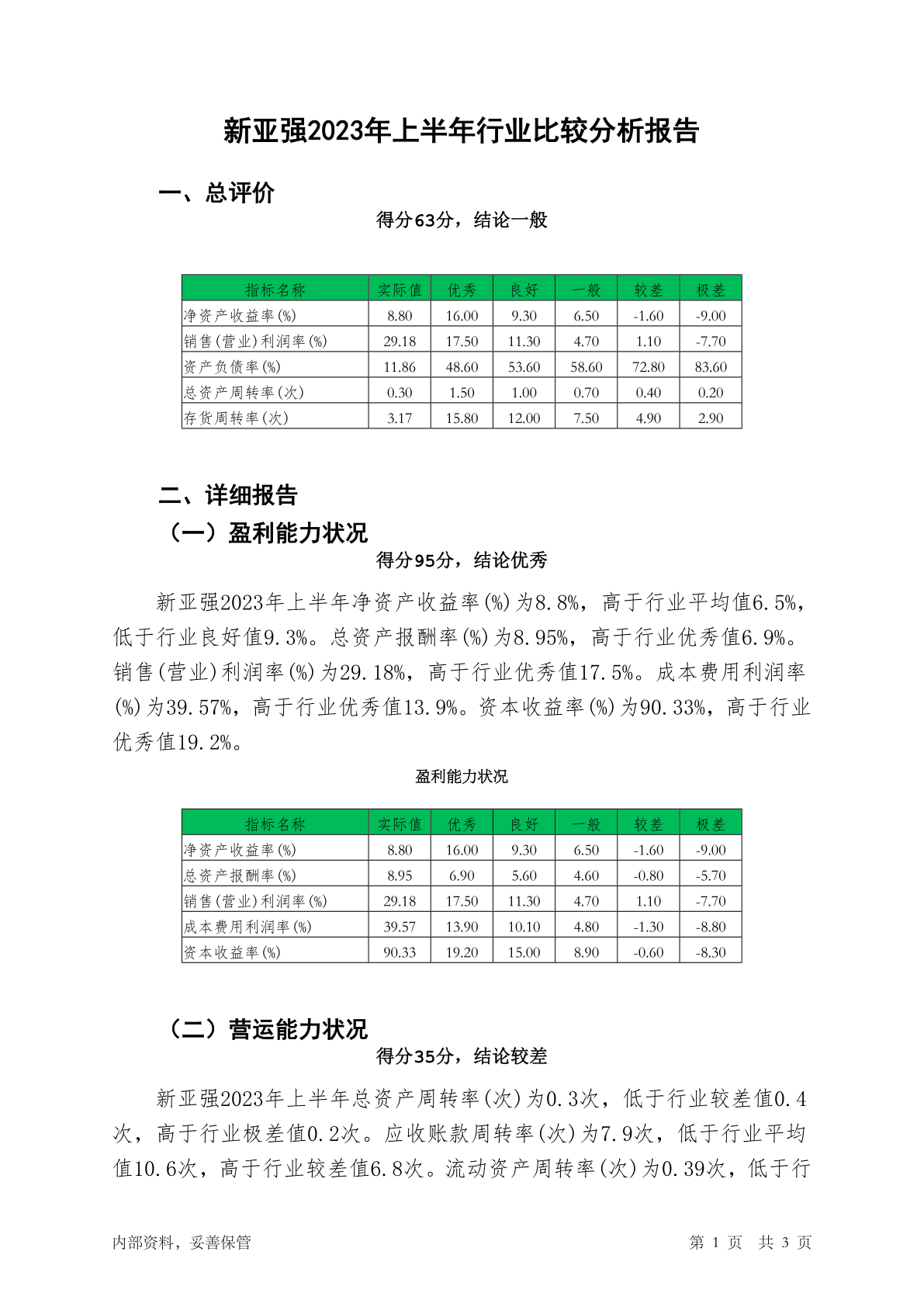 603155新亚强2023年上半年行业比较分析报告