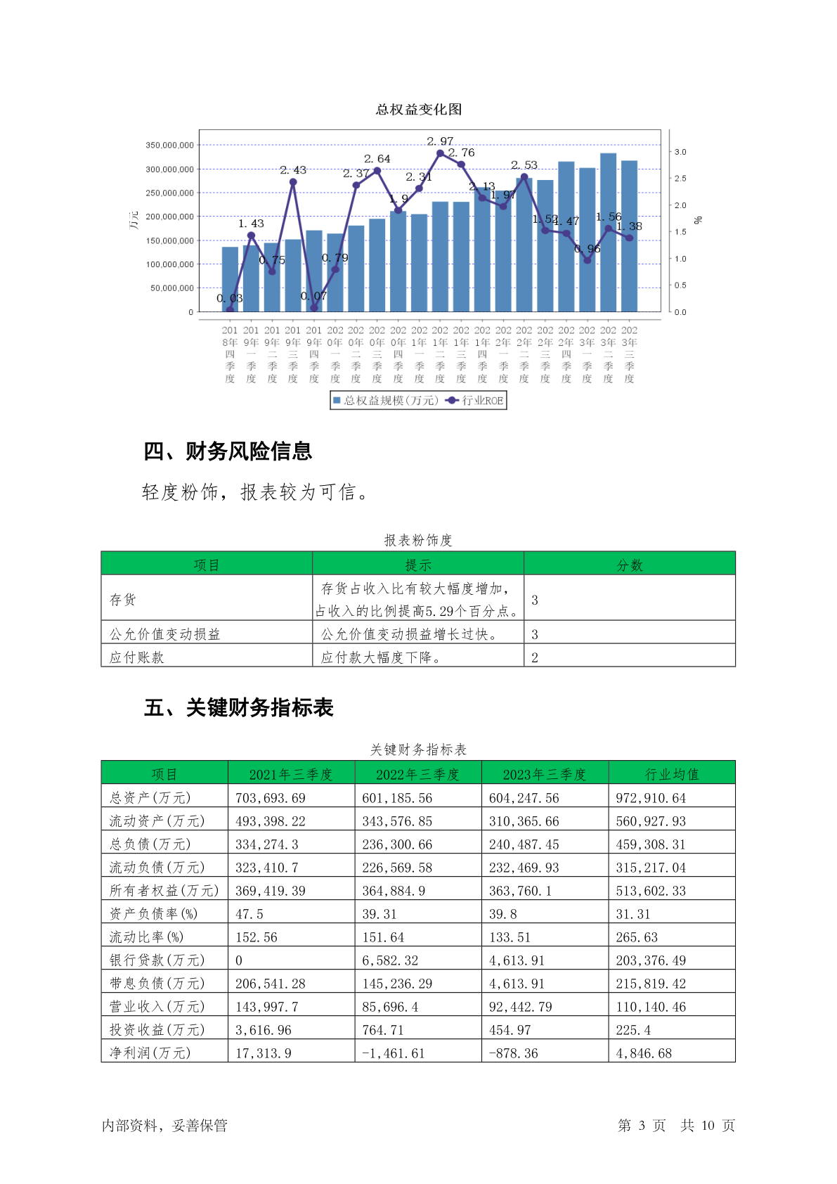 002636金安国纪2023年三季度贷后调查财务分析报告