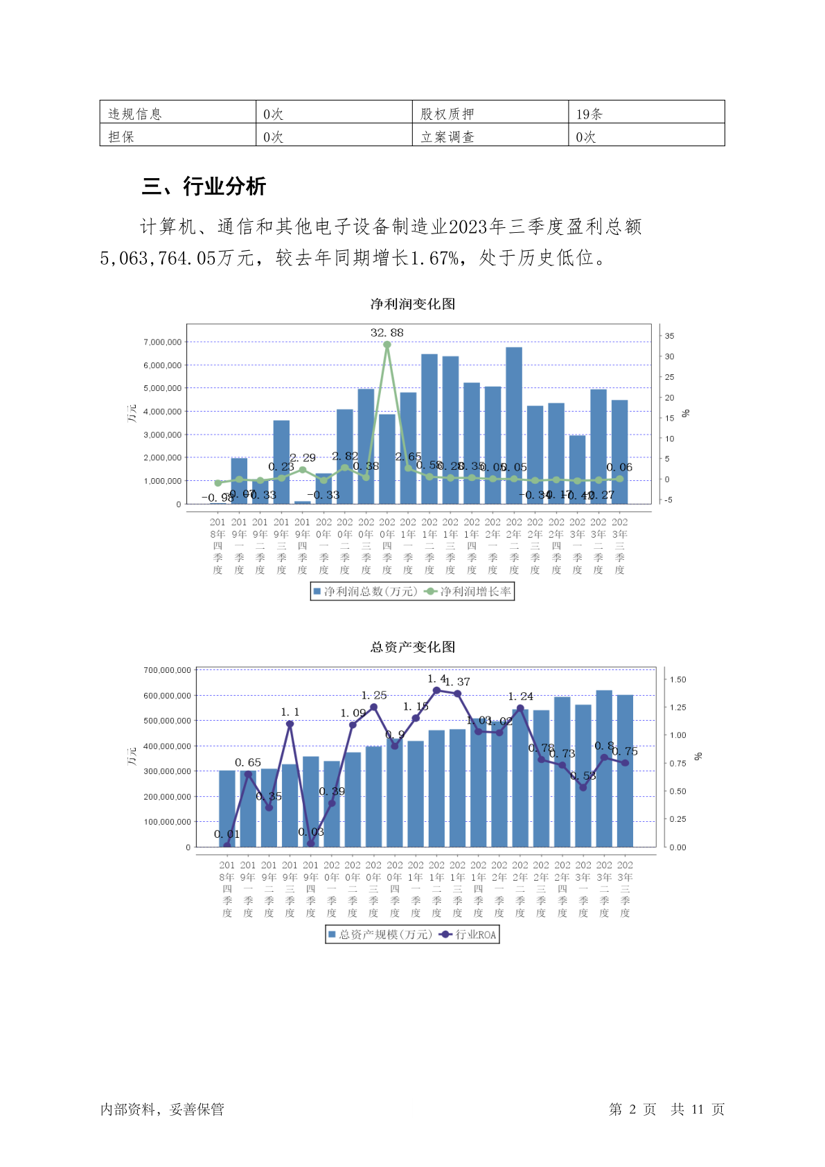 600360华微电子2023年三季度贷后调查财务分析报告