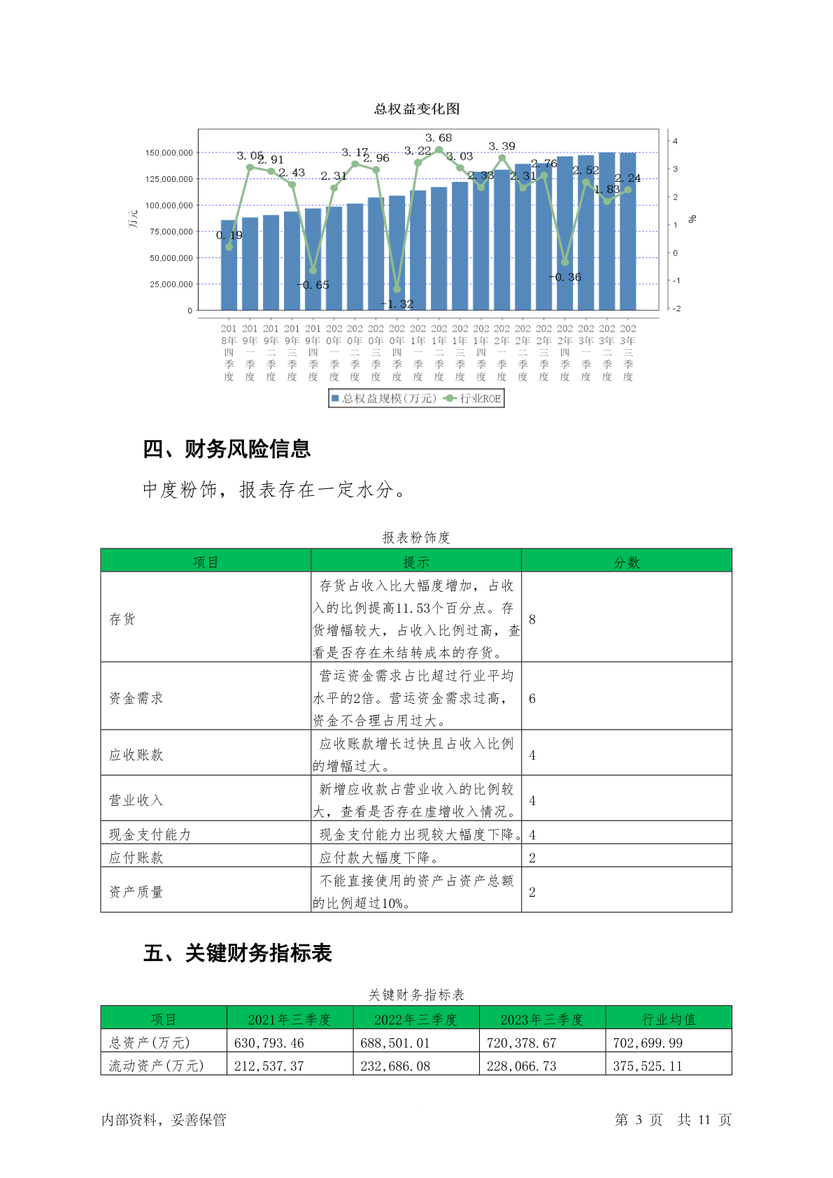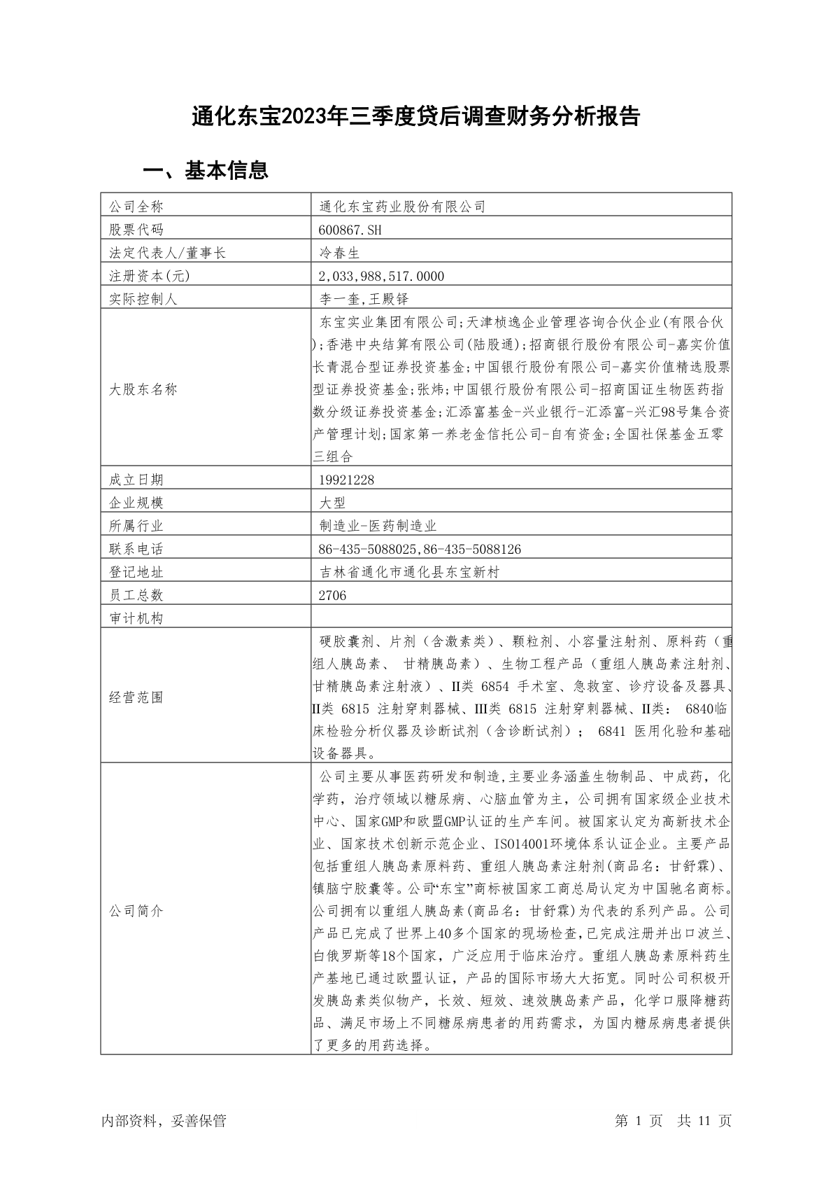 600867通化东宝2023年三季度贷后调查财务分析报告
