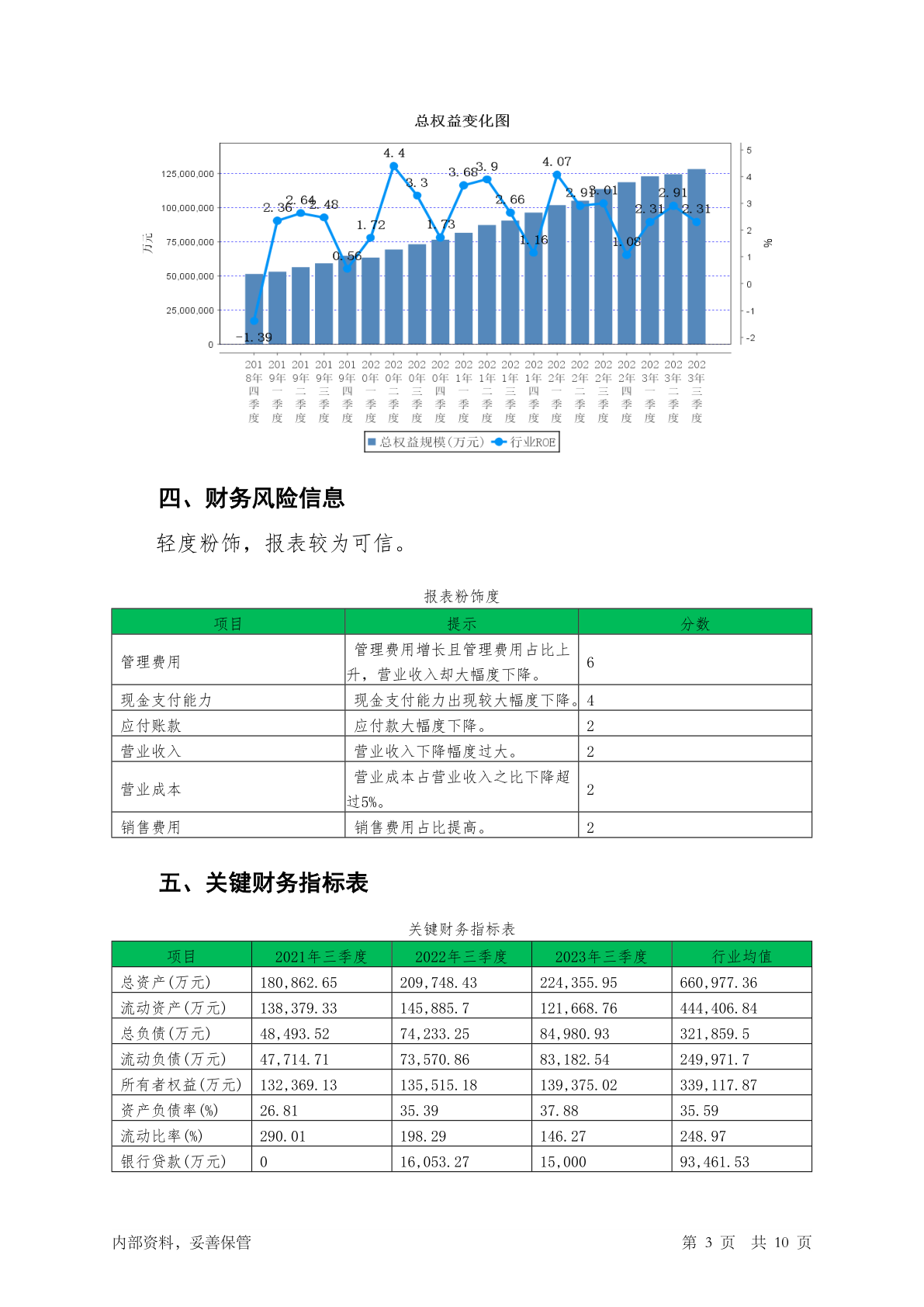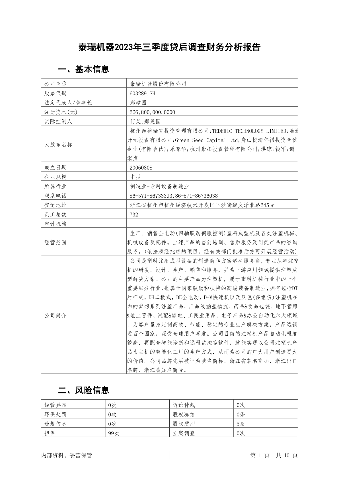 603289泰瑞机器2023年三季度贷后调查财务分析报告