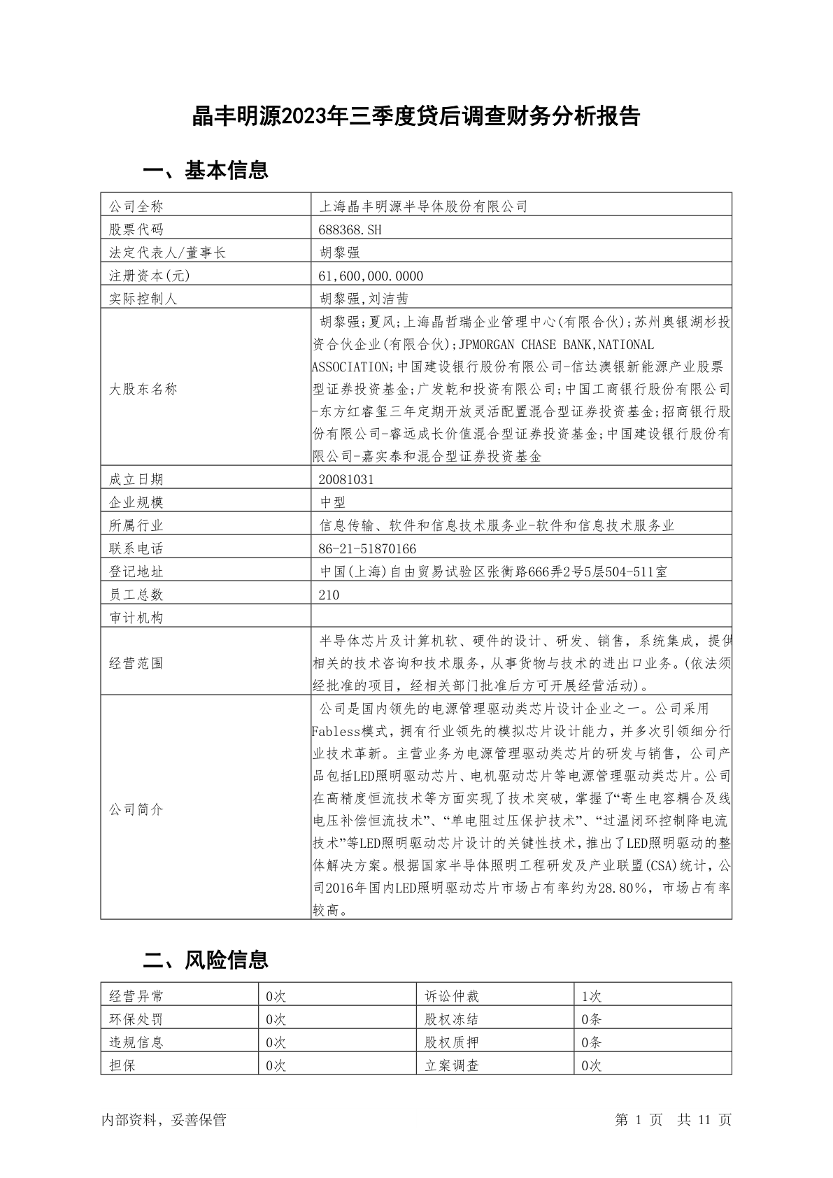 688368晶丰明源2023年三季度贷后调查财务分析报告