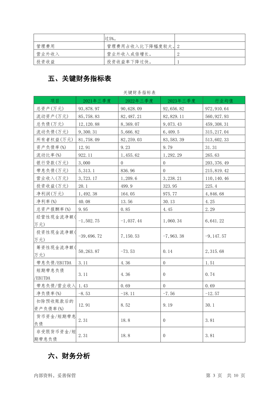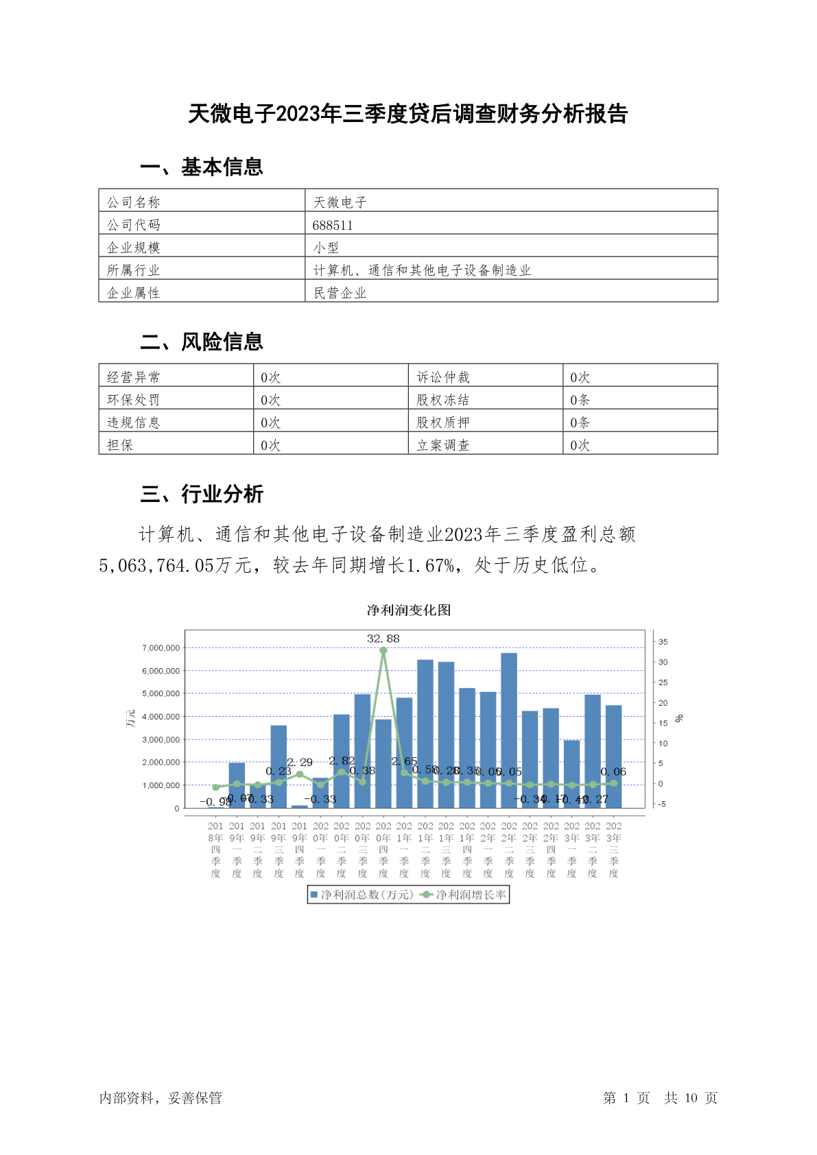 688511天微电子2023年三季度贷后调查财务分析报告
