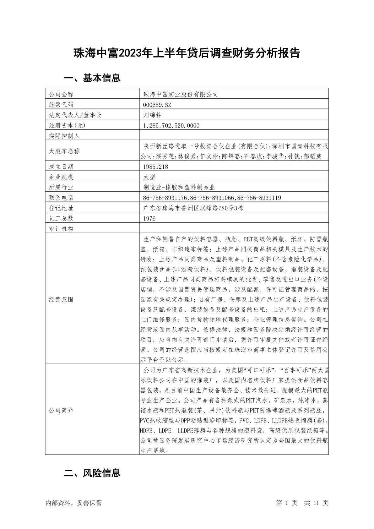 000659珠海中富2023年上半年贷后调查财务分析报告