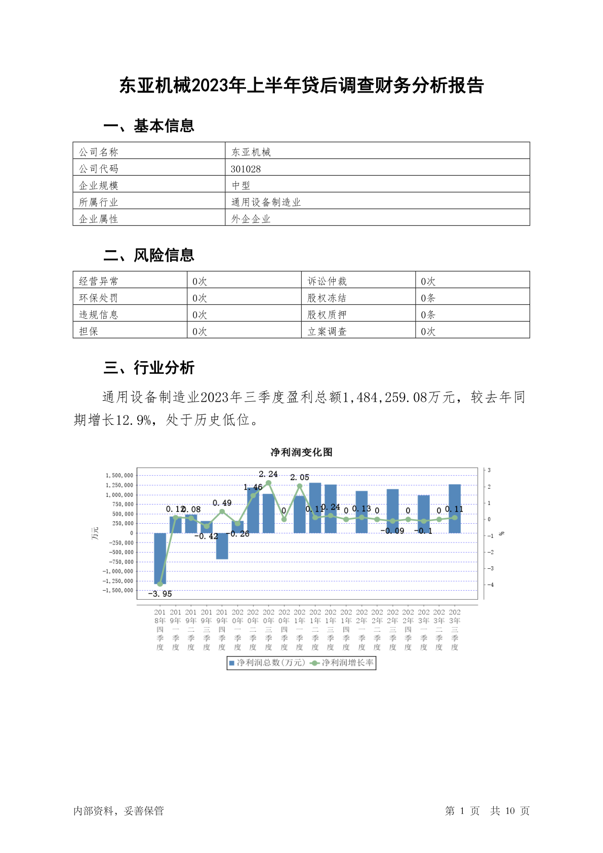 301028东亚机械2023年上半年贷后调查财务分析报告