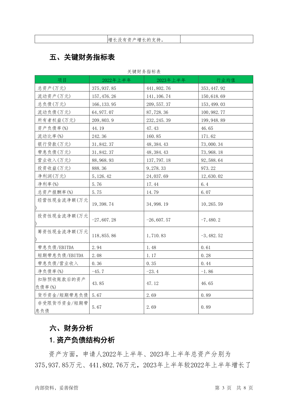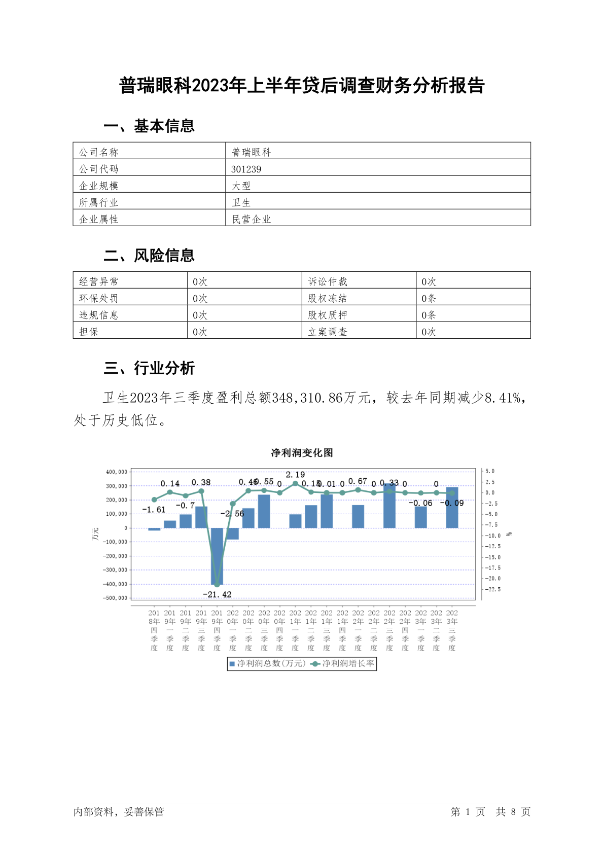 301239普瑞眼科2023年上半年贷后调查财务分析报告