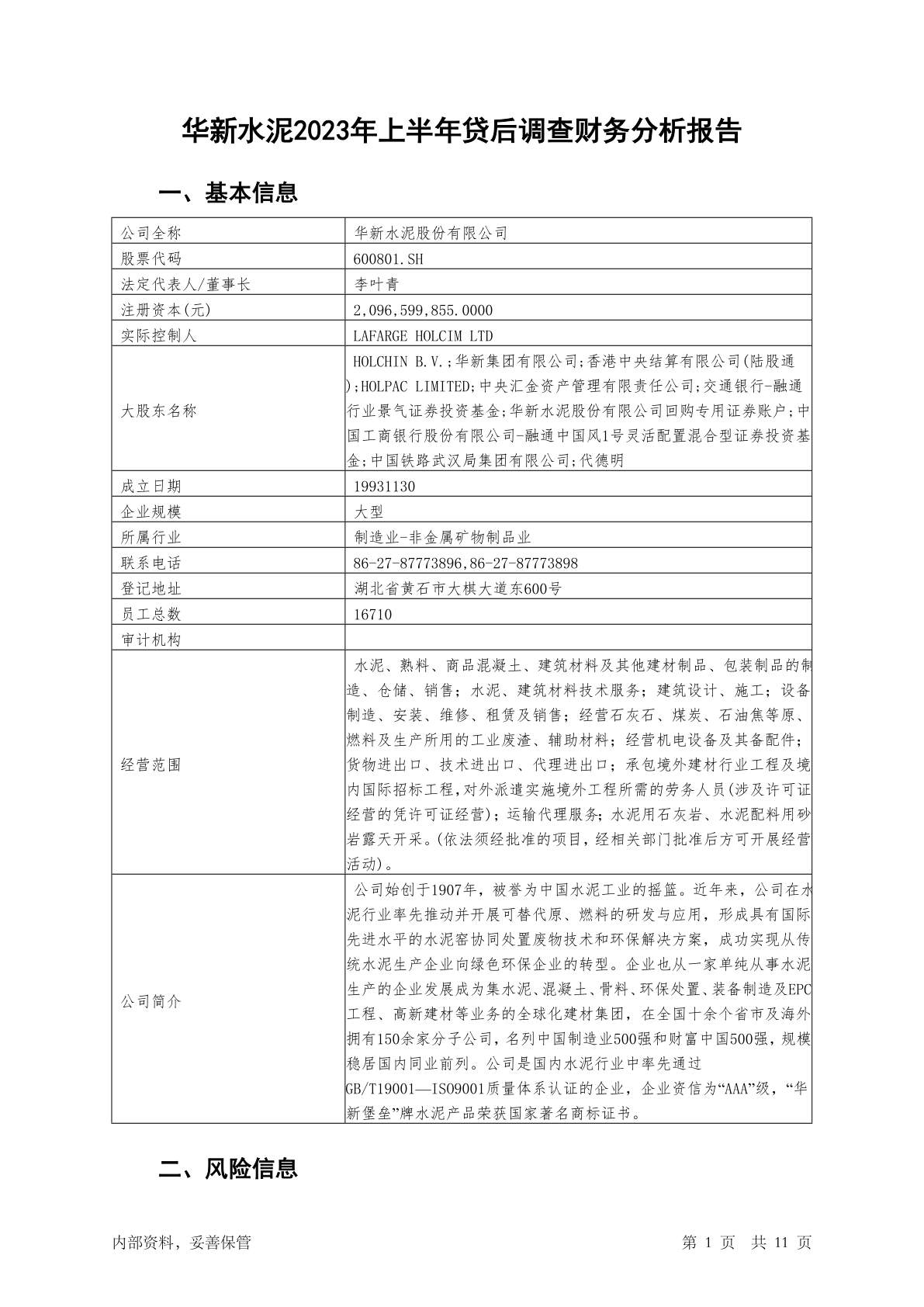 600801华新水泥2023年上半年贷后调查财务分析报告