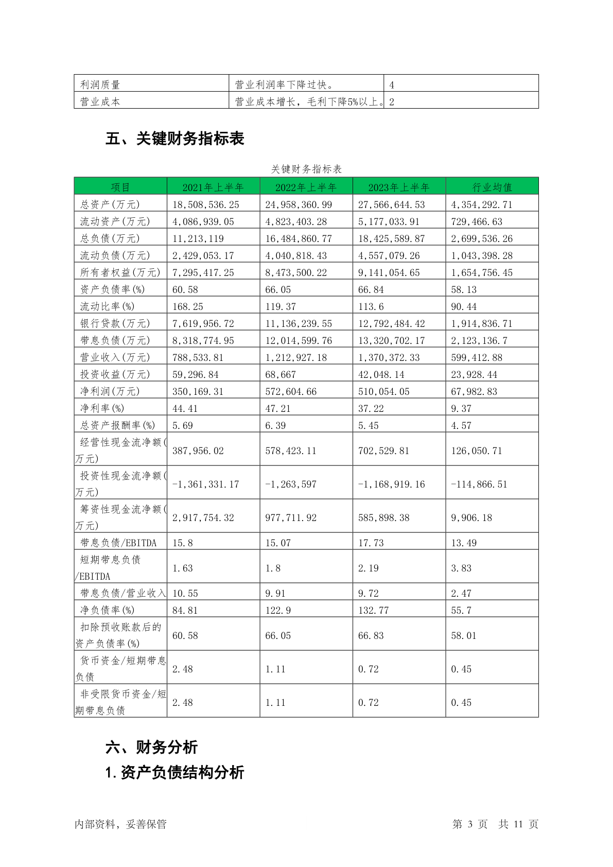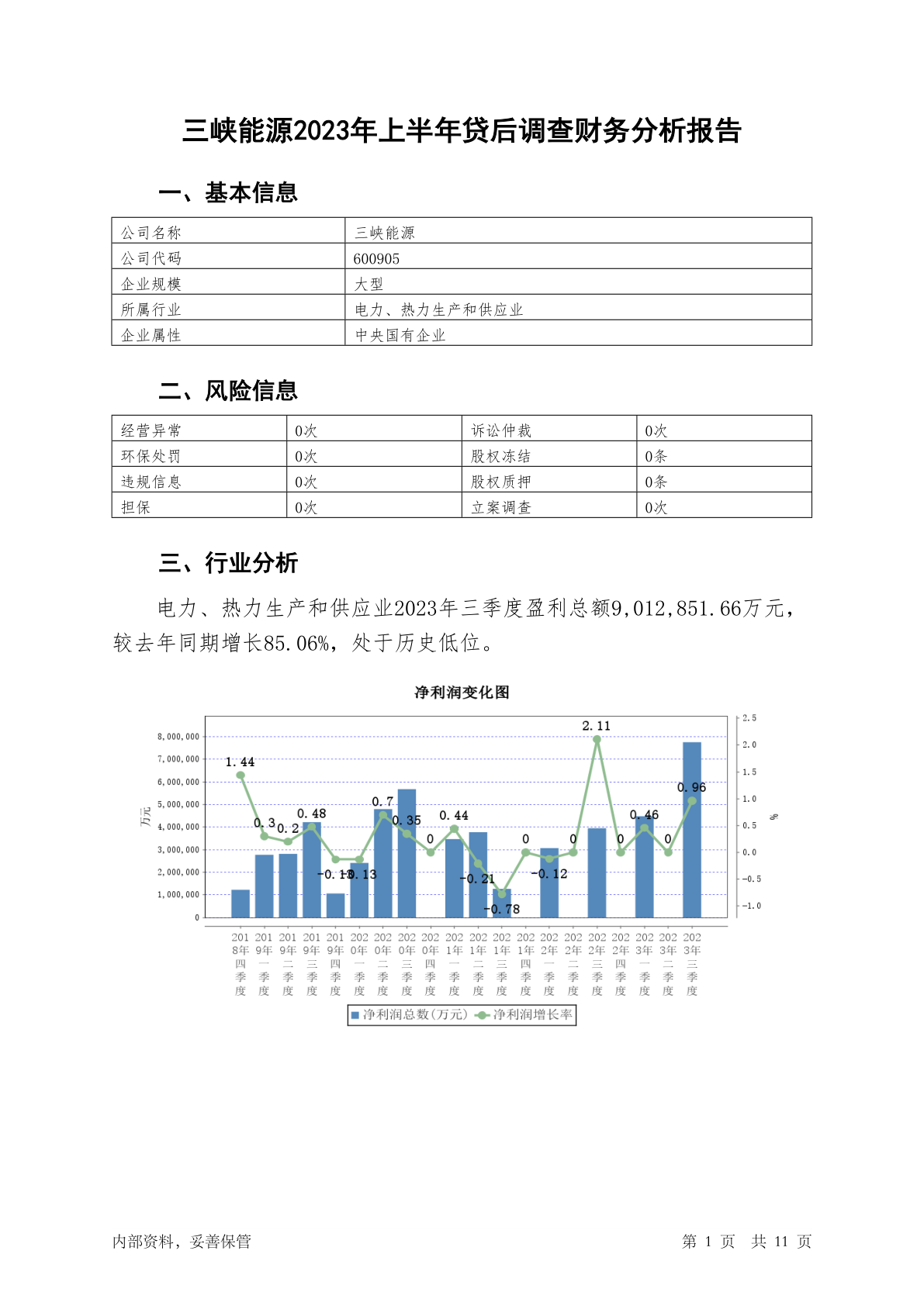 600905三峡能源2023年上半年贷后调查财务分析报告