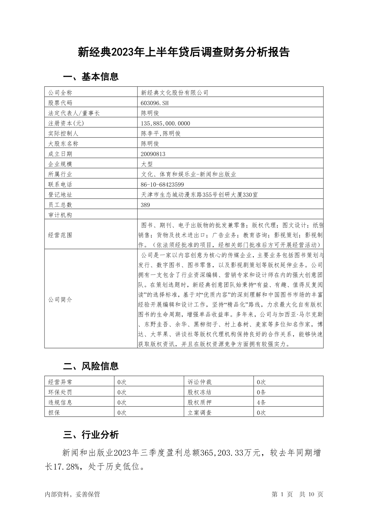 603096新经典2023年上半年贷后调查财务分析报告