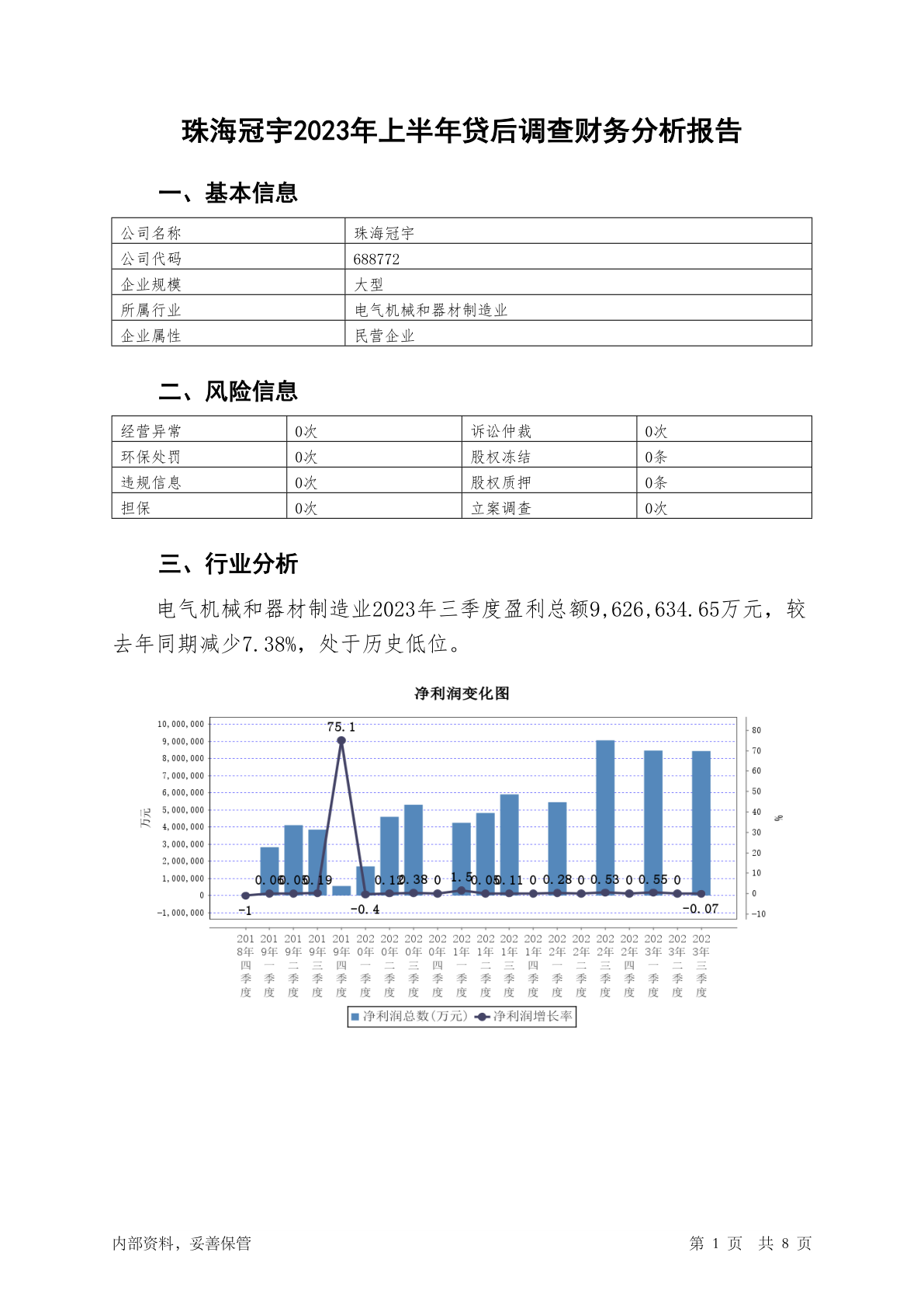 688772珠海冠宇2023年上半年贷后调查财务分析报告