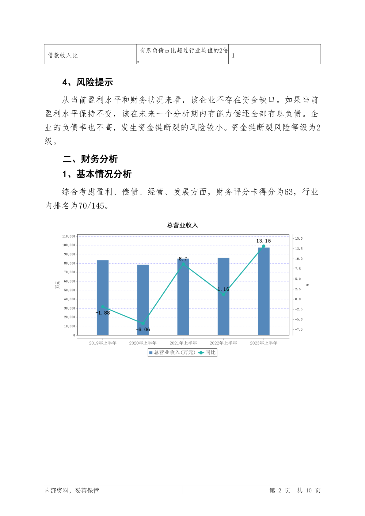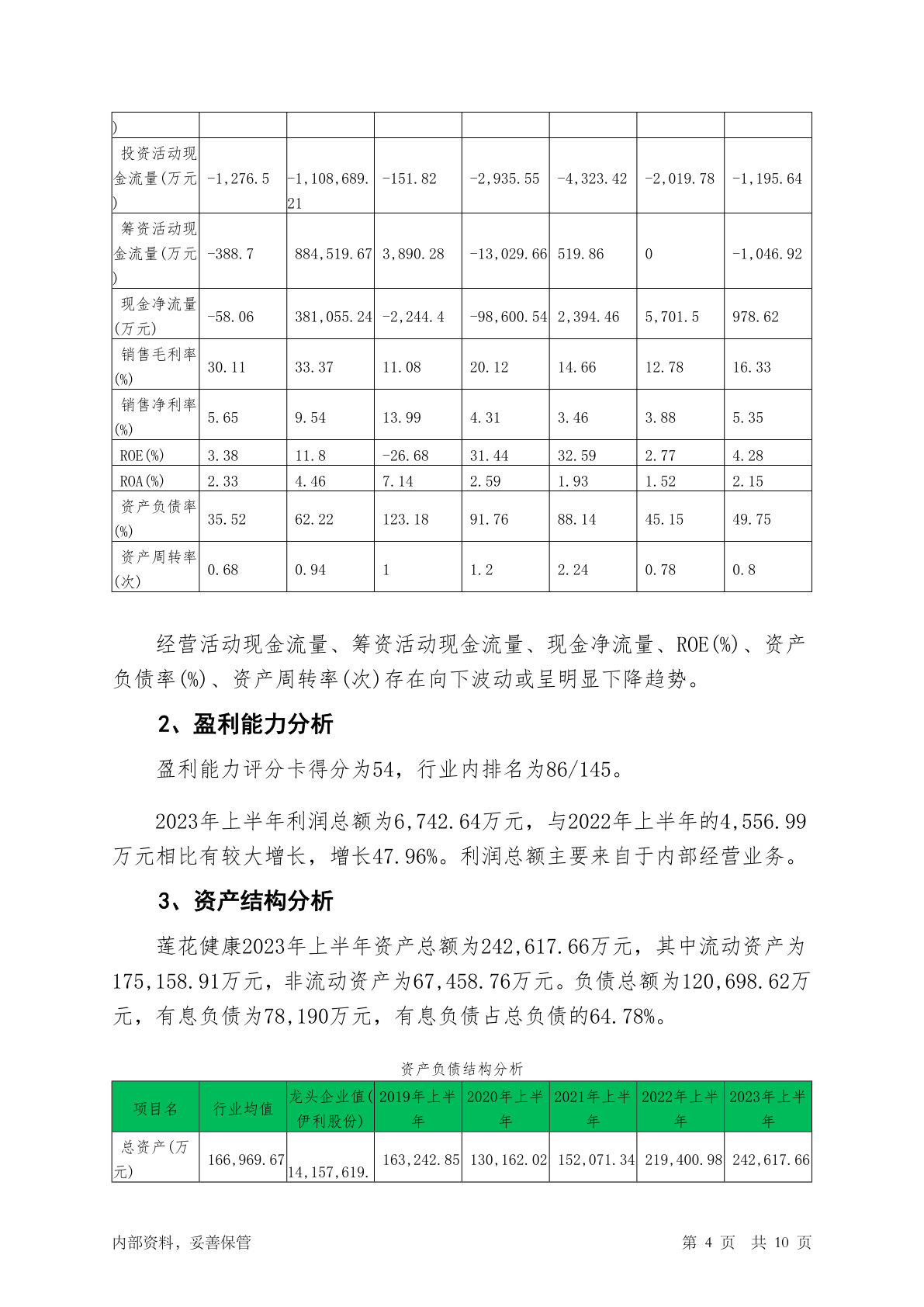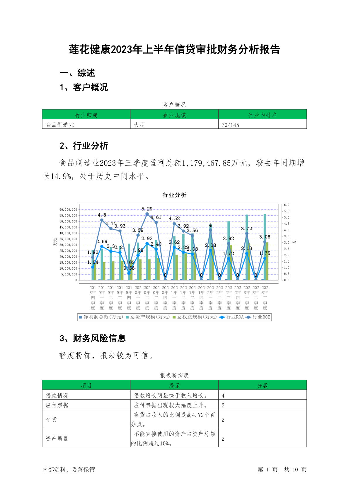 600186莲花健康2023年上半年信贷审批财务分析报告