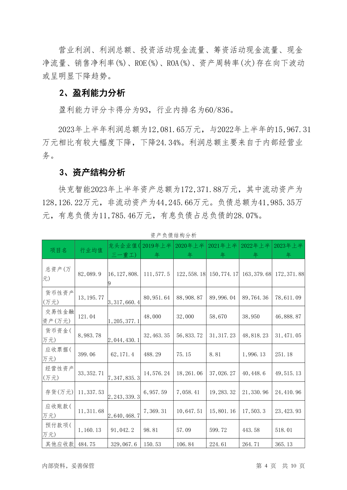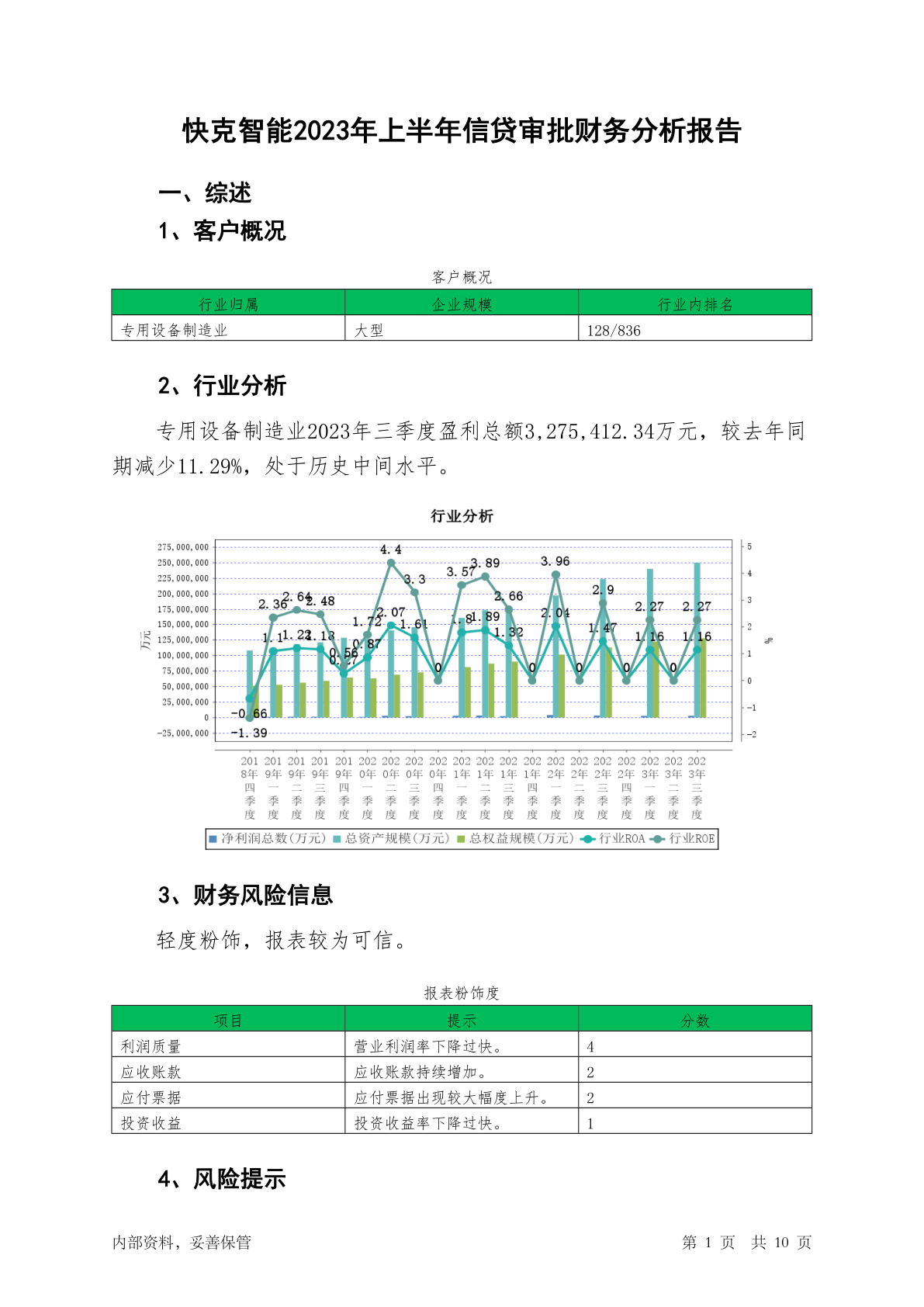 603203快克智能2023年上半年信贷审批财务分析报告