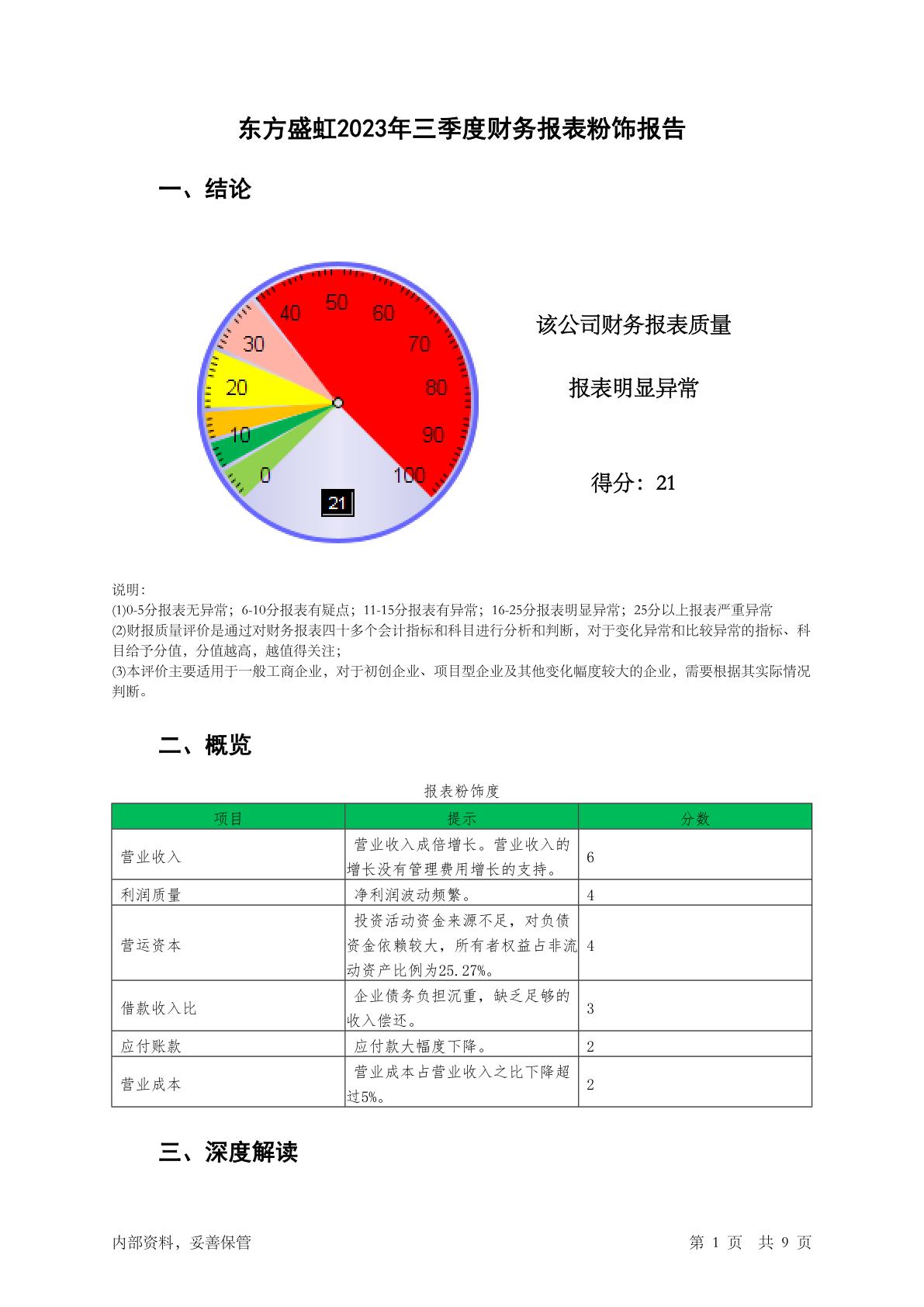 000301东方盛虹2023年三季度财务报表粉饰报告