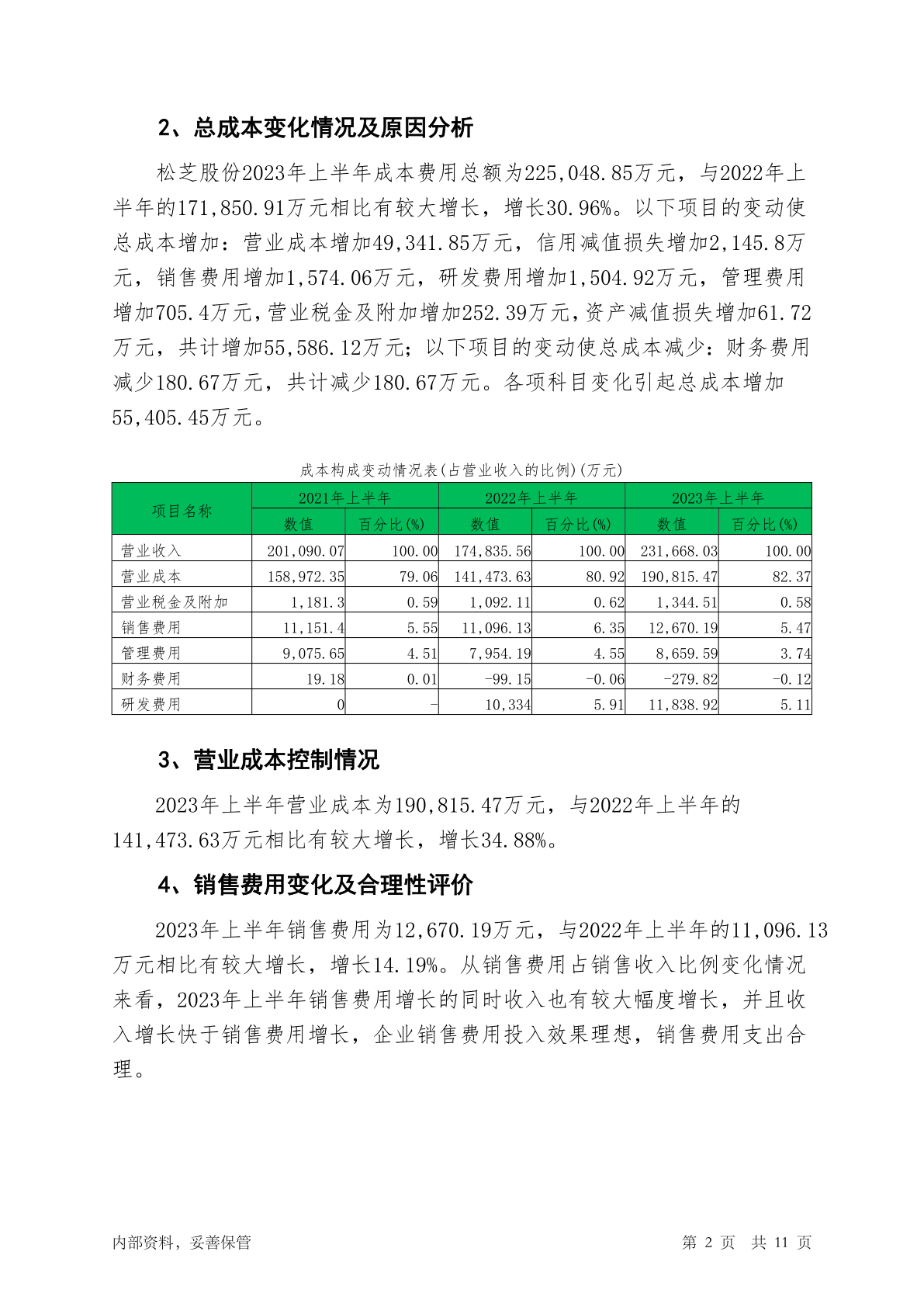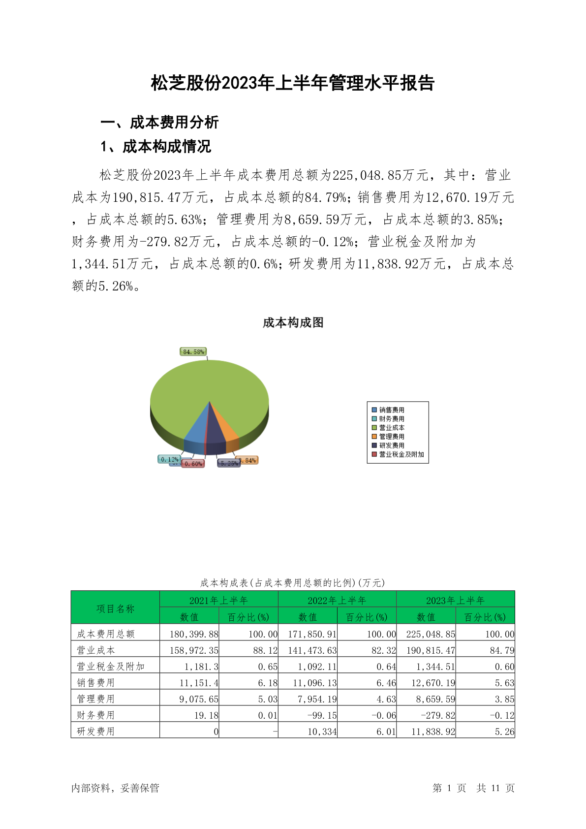 002454松芝股份2023年上半年管理水平报告