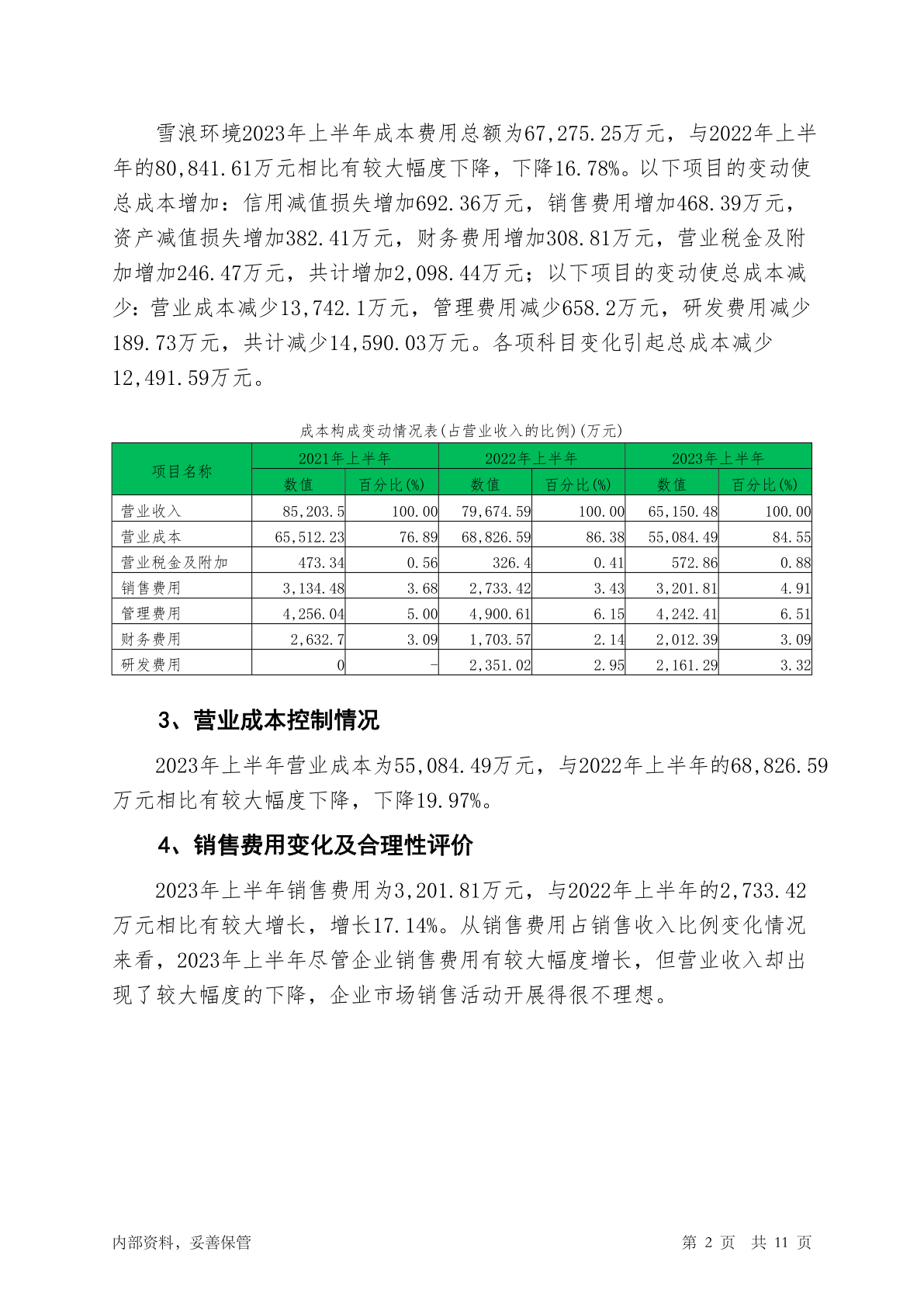 300385雪浪环境2023年上半年管理水平报告