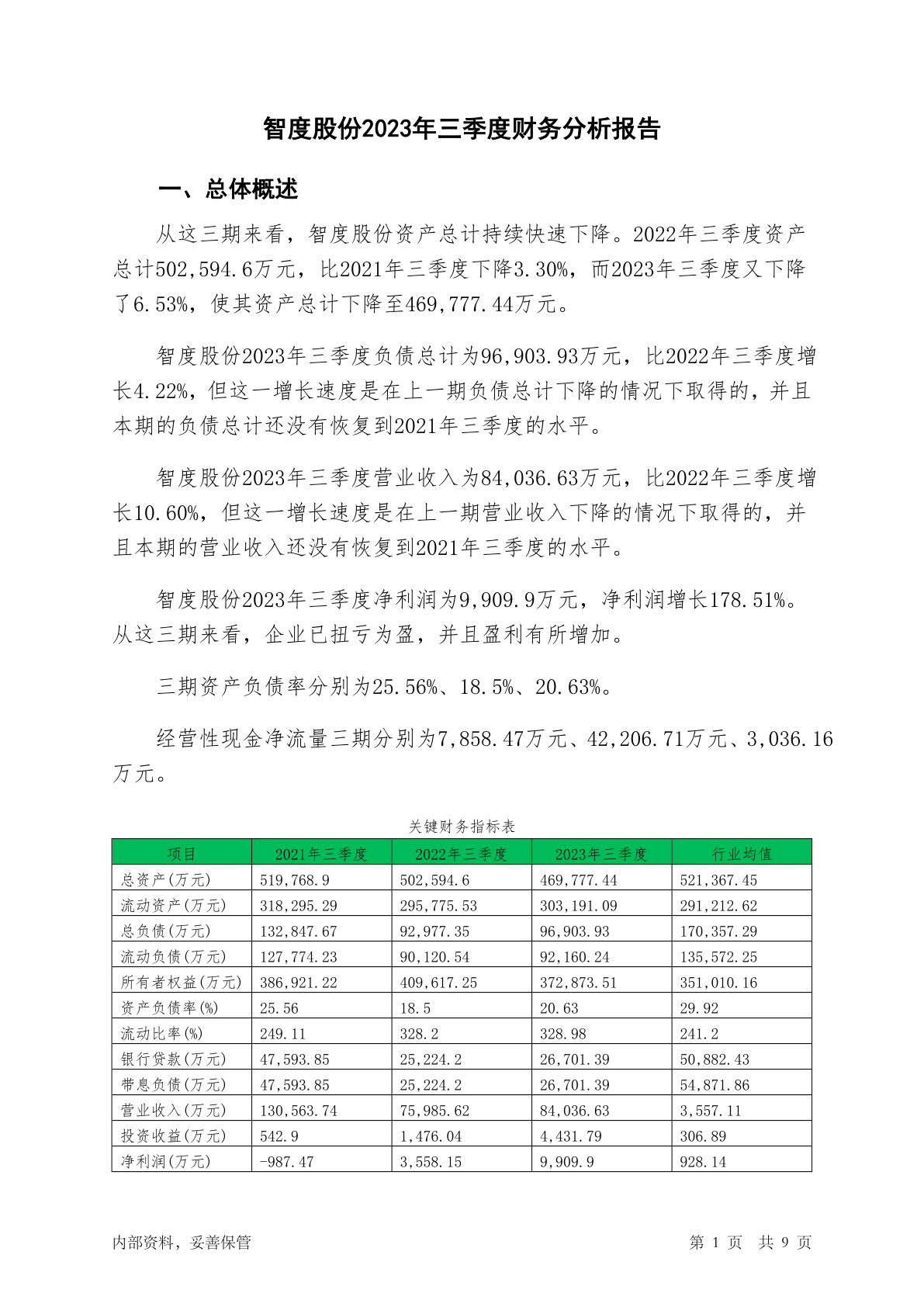 000676智度股份2023年三季度财务分析报告-银行版