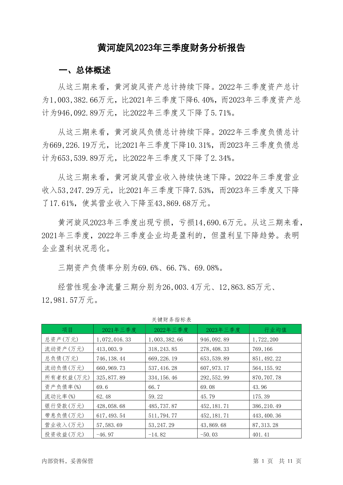 600172黄河旋风2023年三季度财务分析报告-银行版