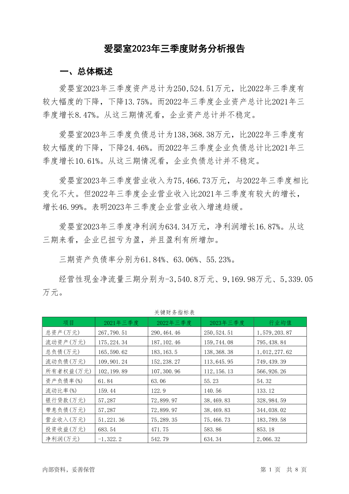 603214爱婴室2023年三季度财务分析报告-银行版