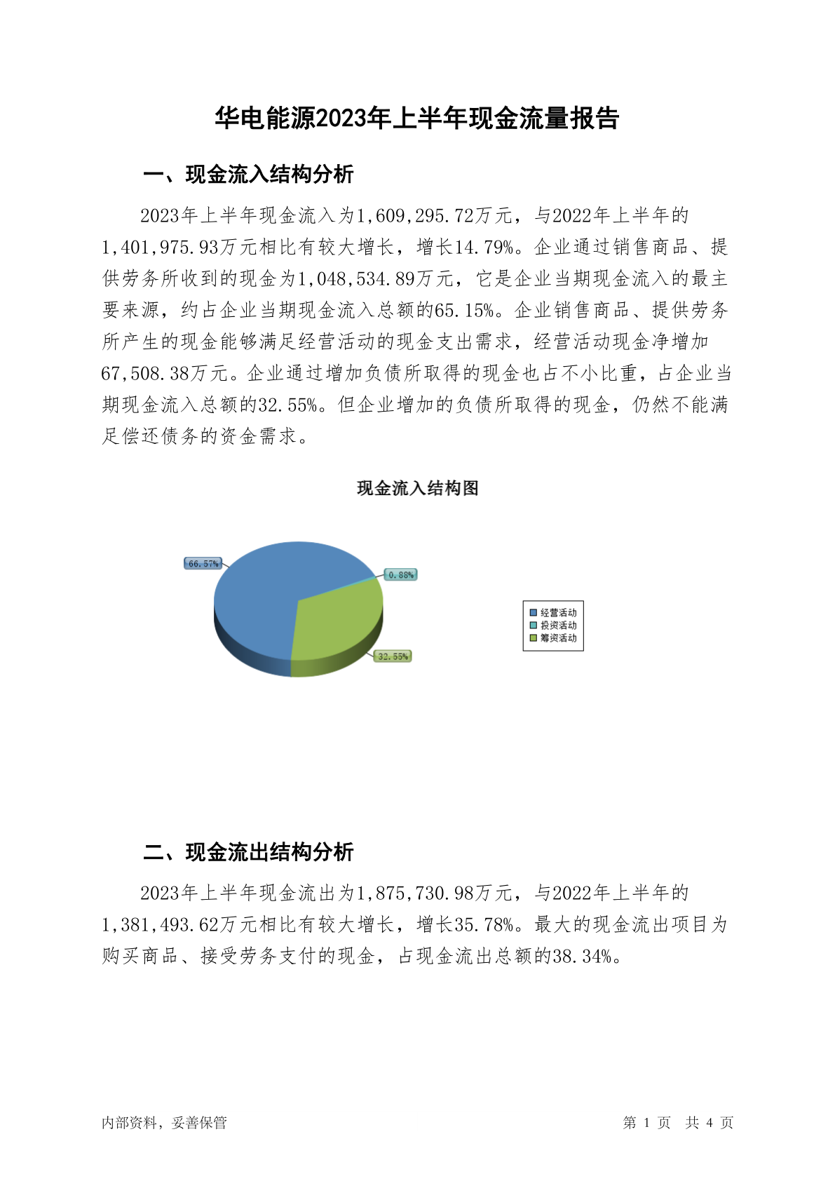 600726华电能源2023年上半年现金流量报告