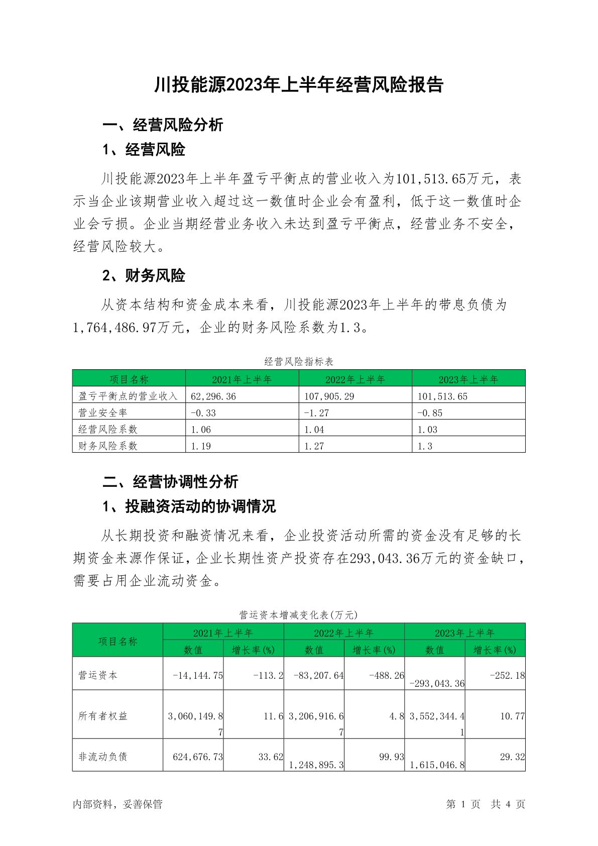 600674川投能源2023年上半年经营风险报告