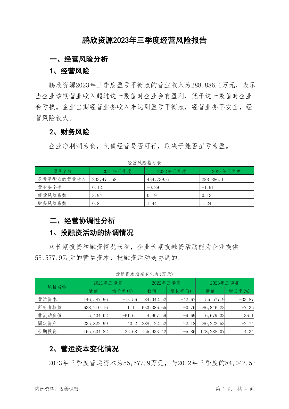 600490鹏欣资源2023年三季度经营风险报告