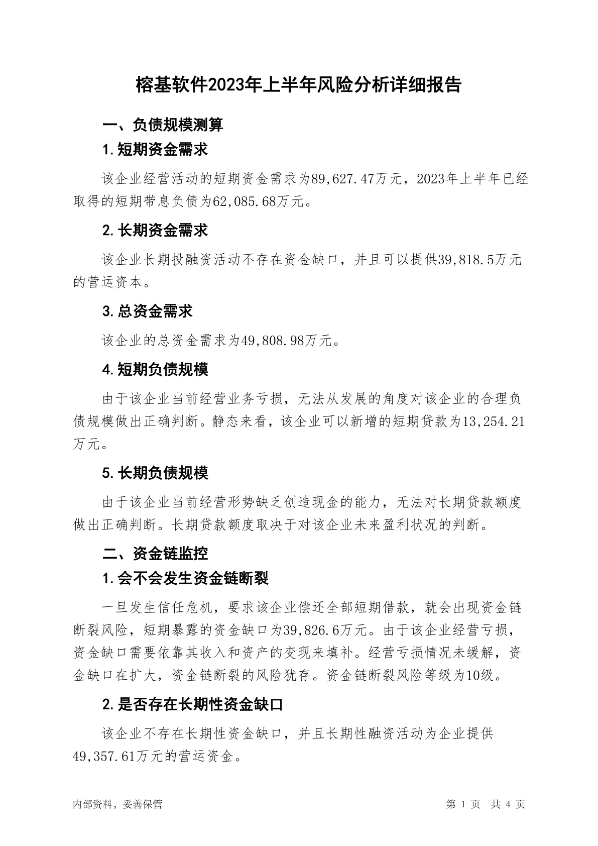 002474榕基软件2023年上半年财务风险分析详细报告