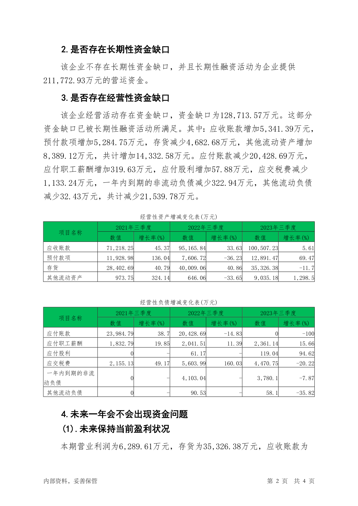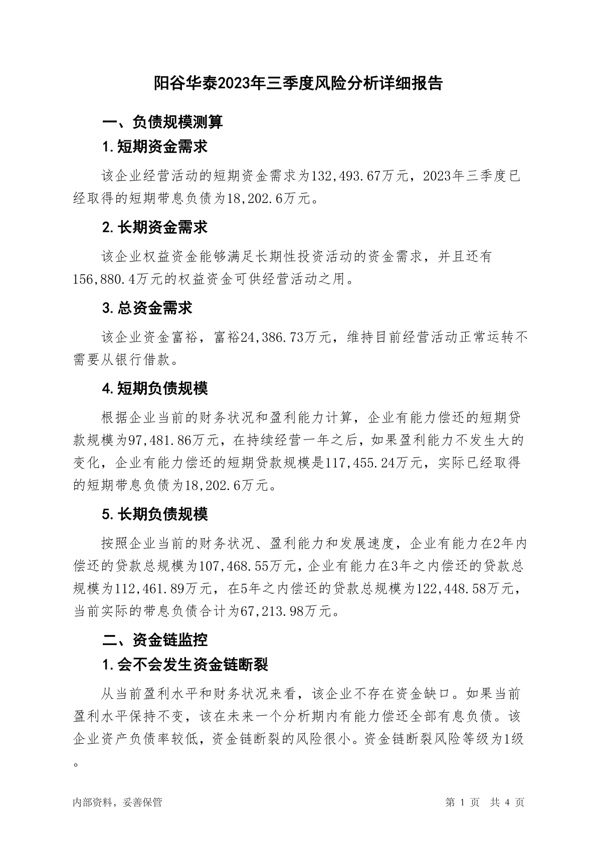 300121阳谷华泰2023年三季度财务风险分析详细报告