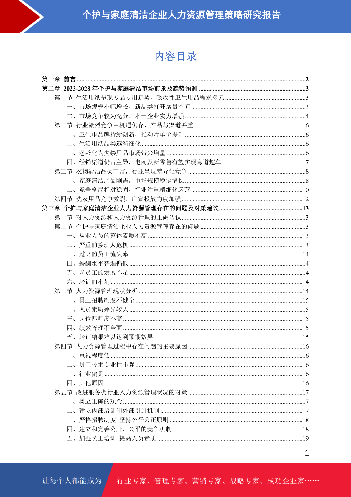 个护与家庭清洁市场前景预测与人力资源管理策略研究报告