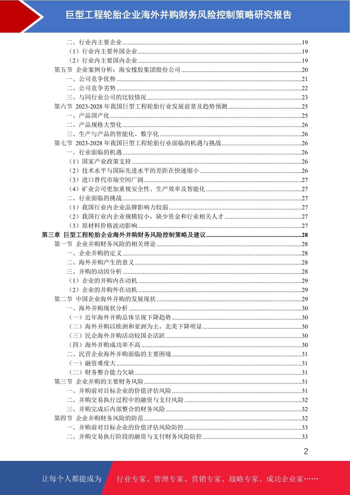 巨型工程轮胎企业海外并购财务风险控制策略研究报告