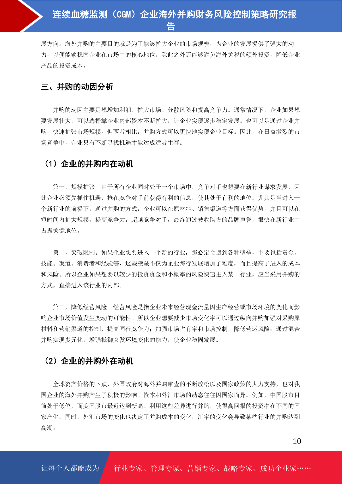 连续血糖监测(CGM)企业海外并购财务风险控制策略研究报告
