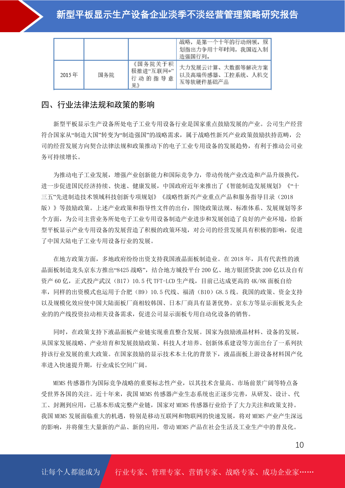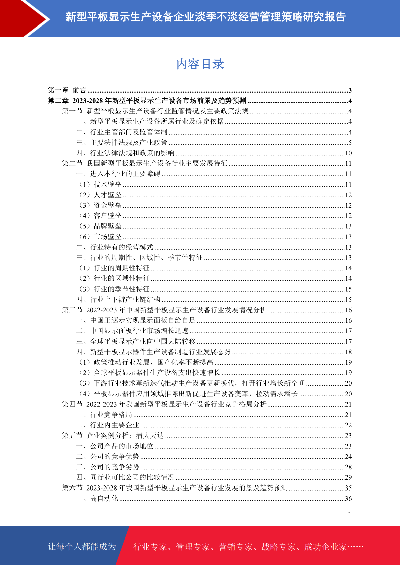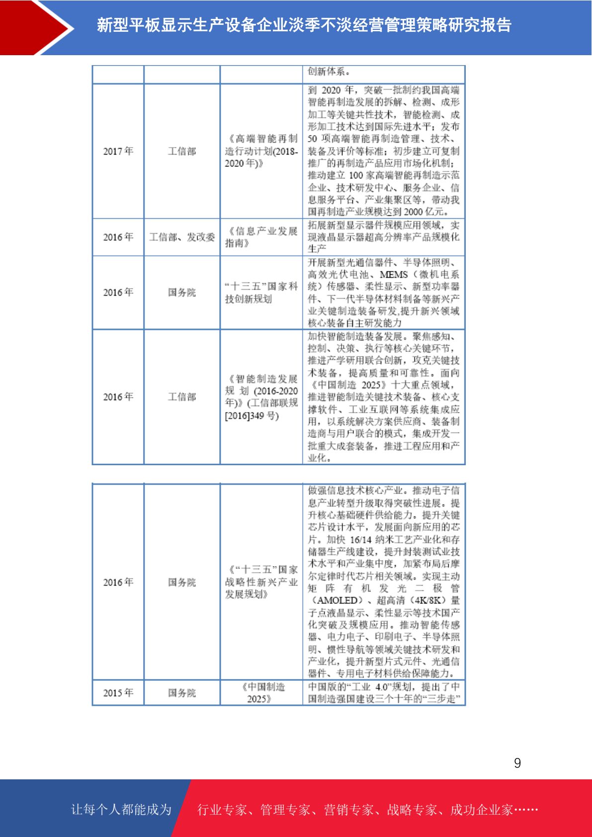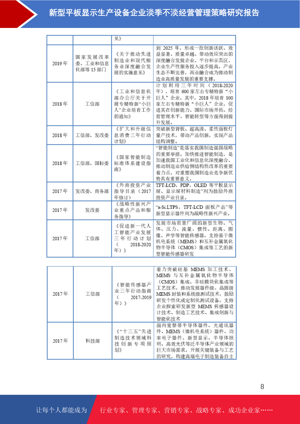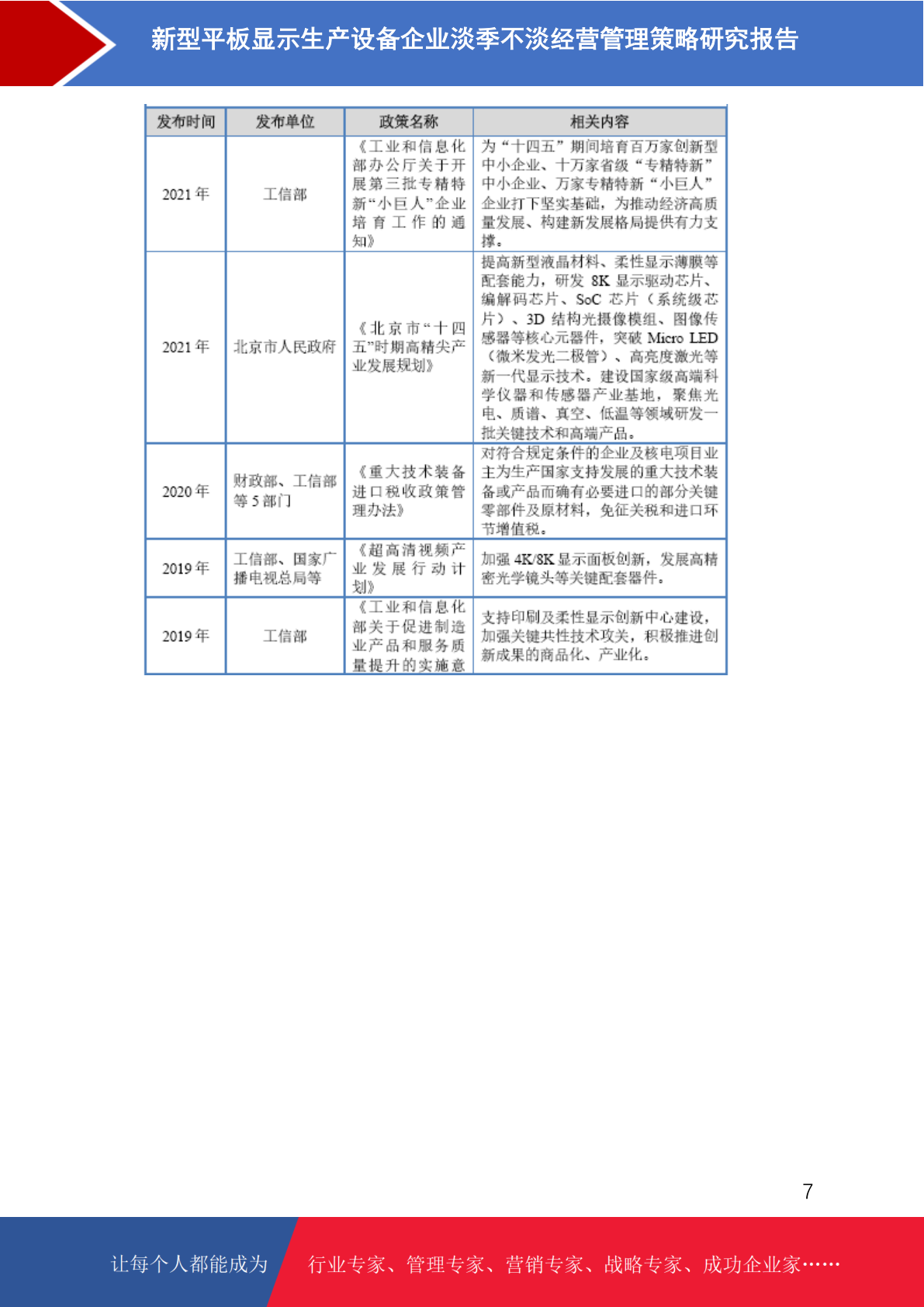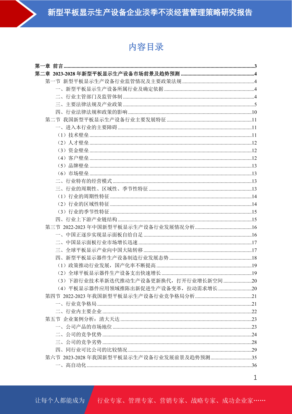 新型平板显示生产设备企业淡季不淡经营管理策略研究报告