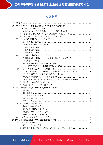 公用环保基础设施REITs市场前景预测与短视频营销策略研究报告