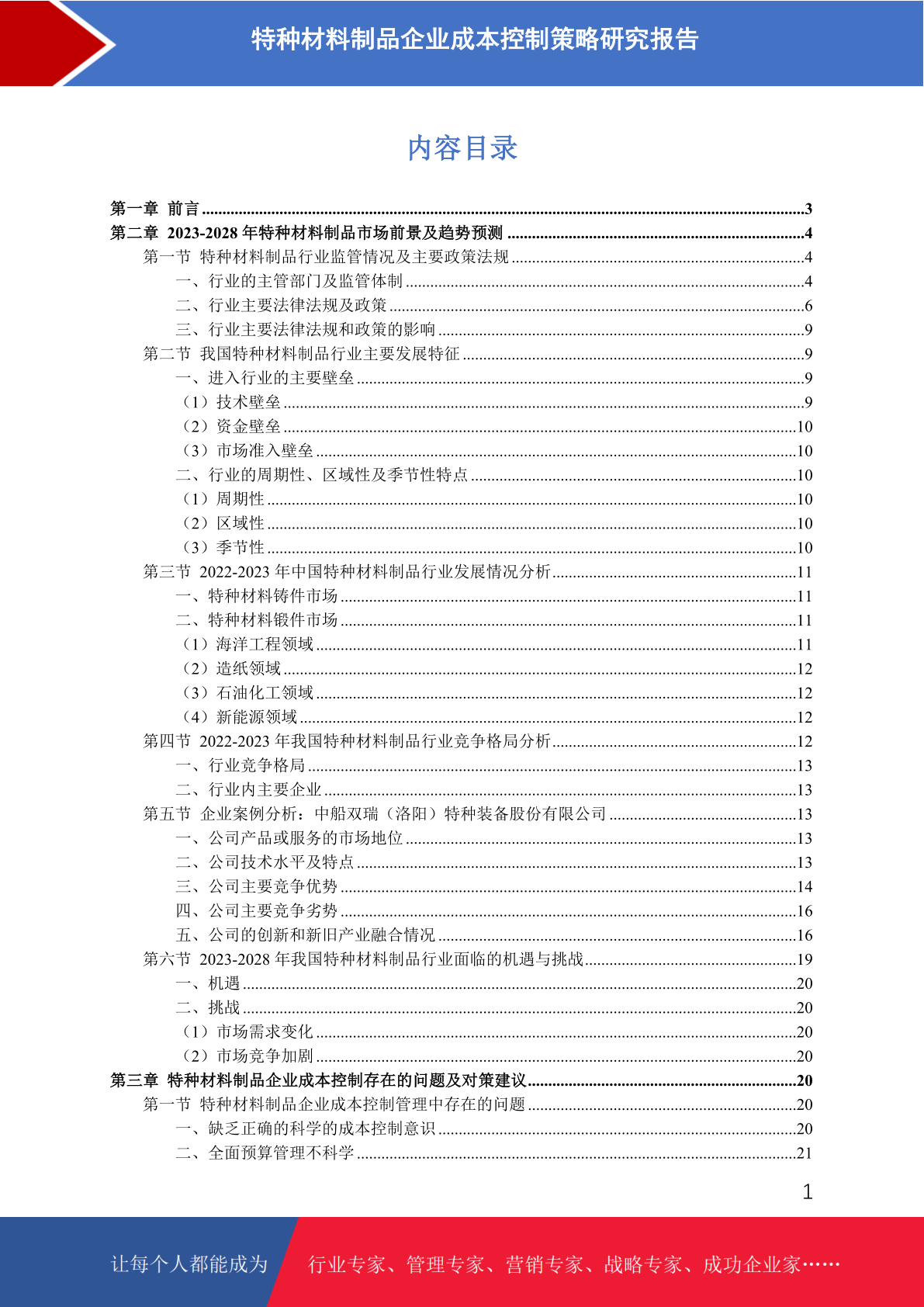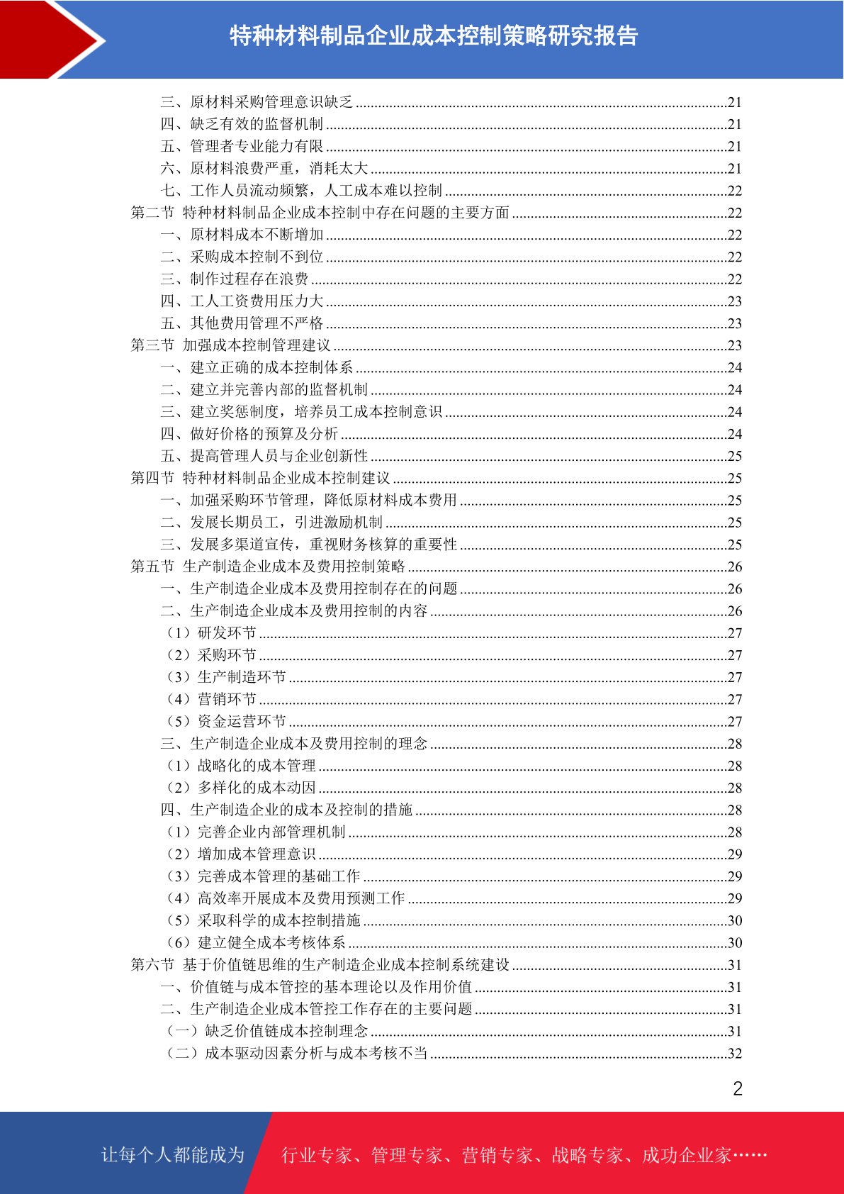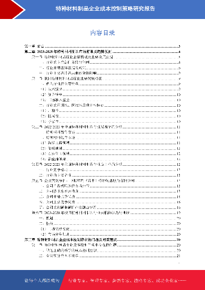 特种材料制品企业成本控制存在的问题及策略研究报告