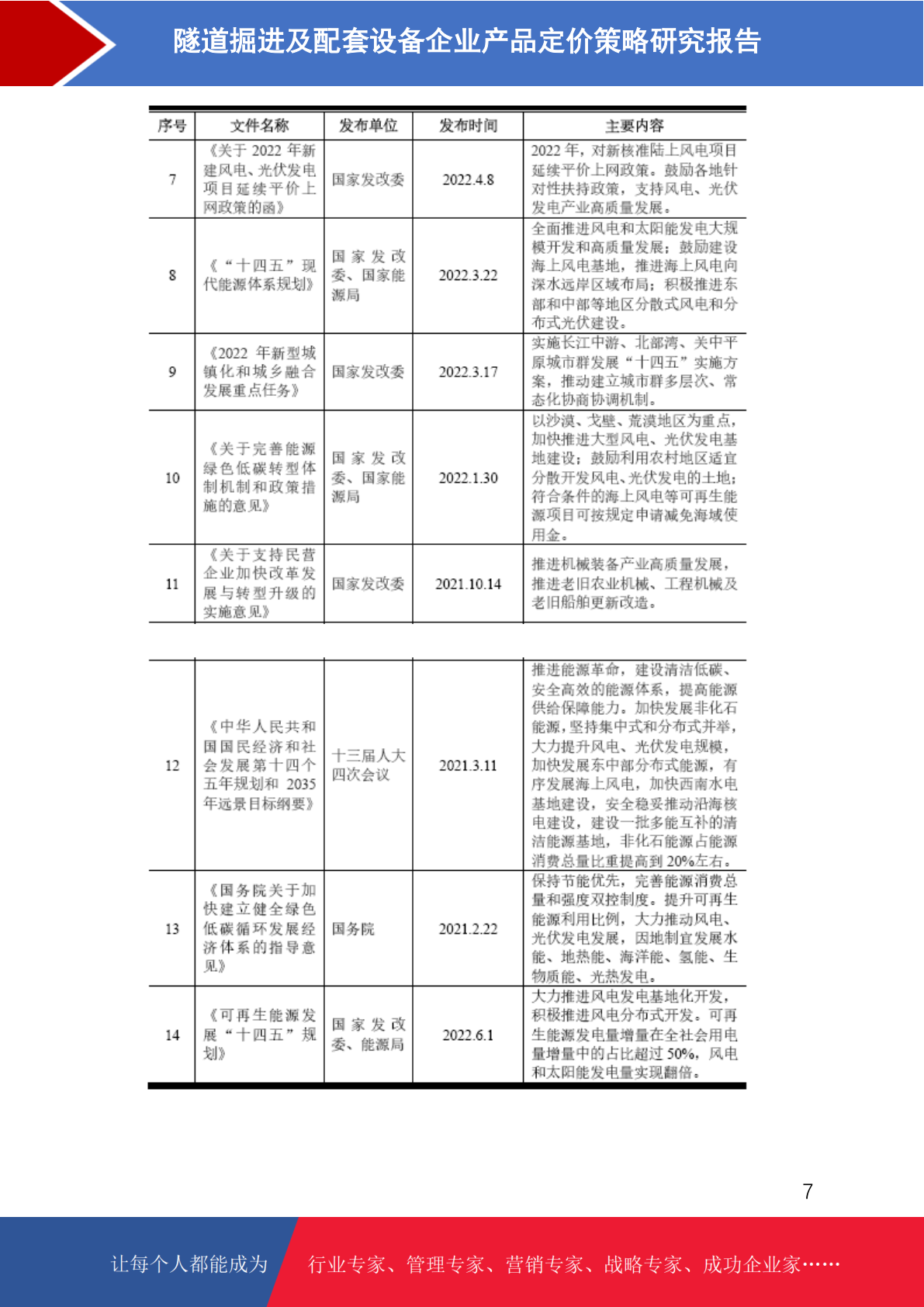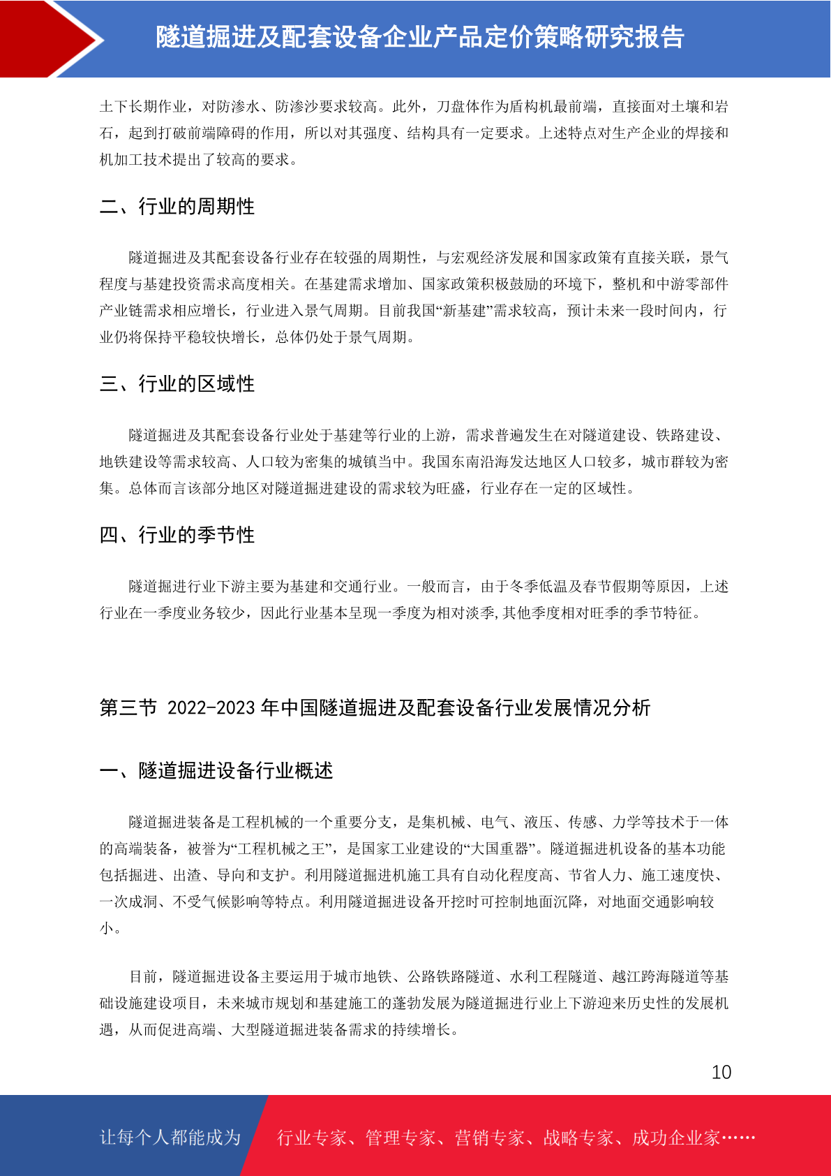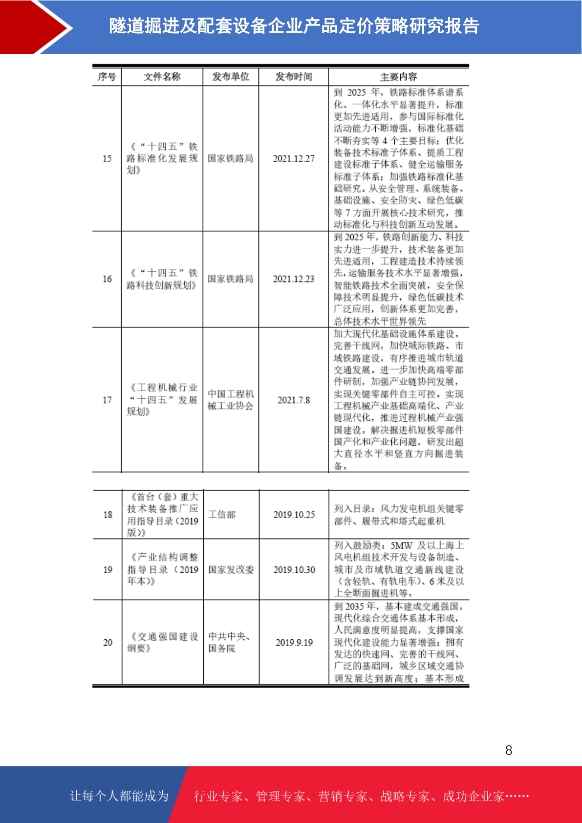 隧道掘进及配套设备企业产品定价原则及策略研究报告
