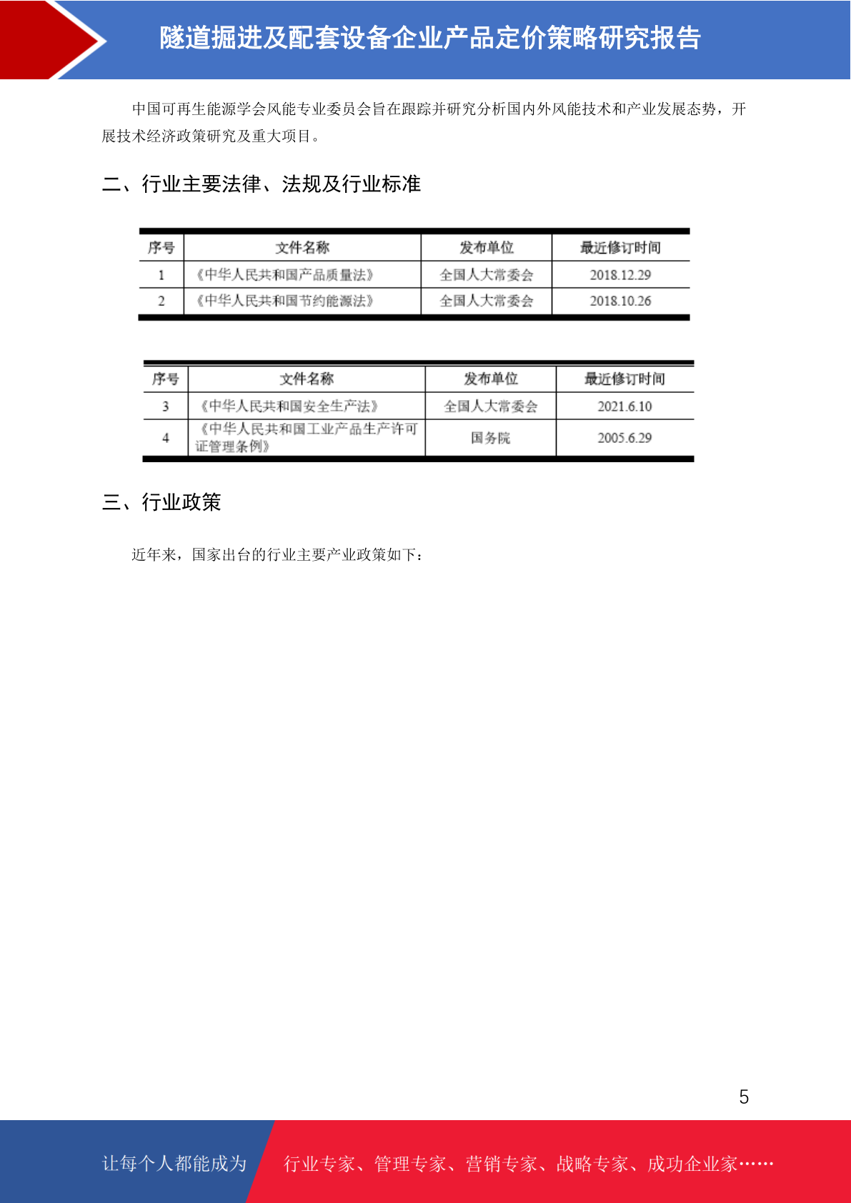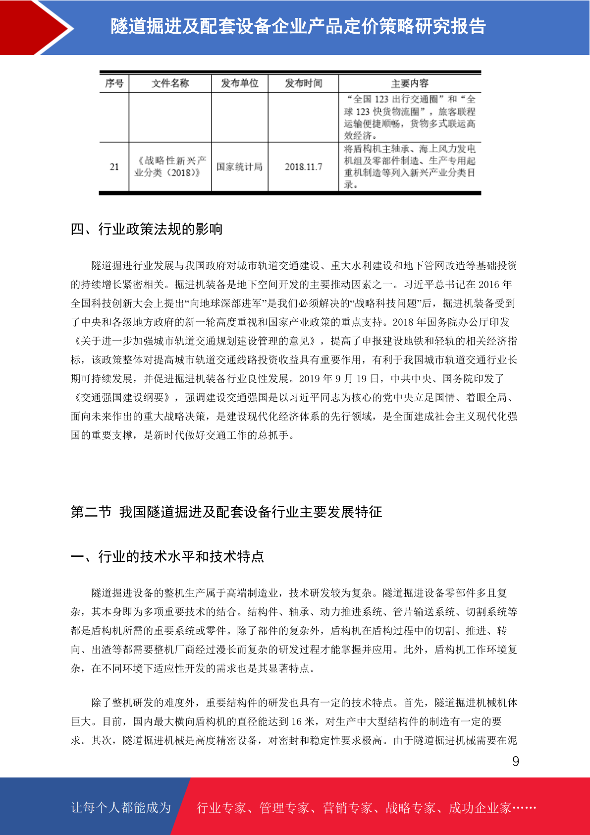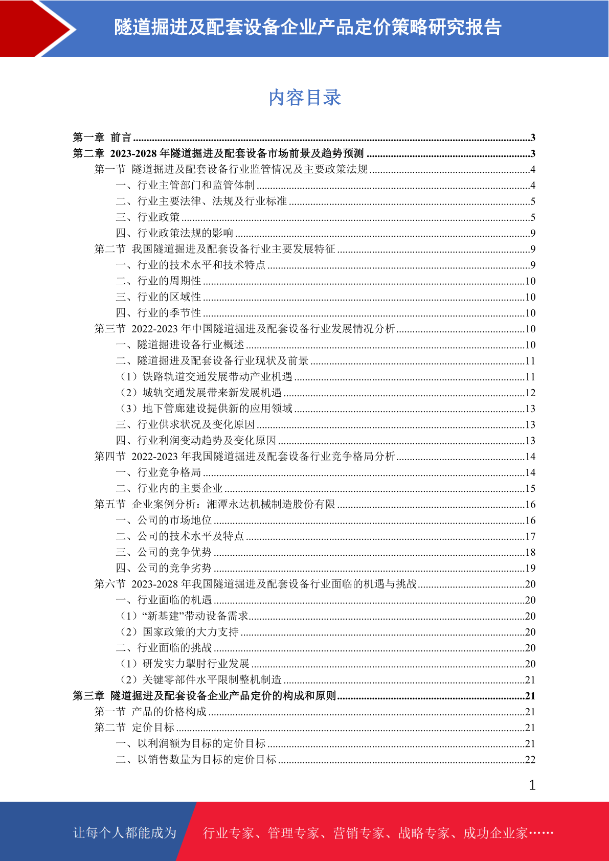 隧道掘进及配套设备企业产品定价原则及策略研究报告