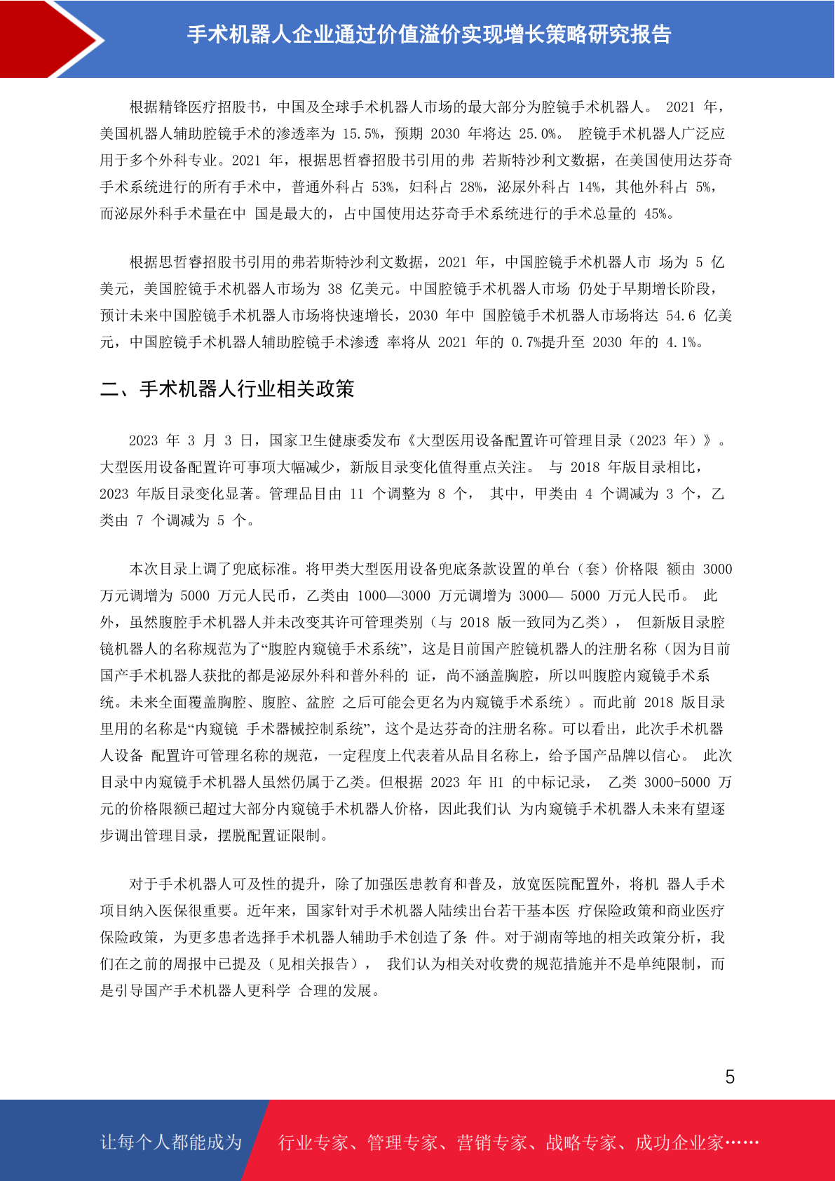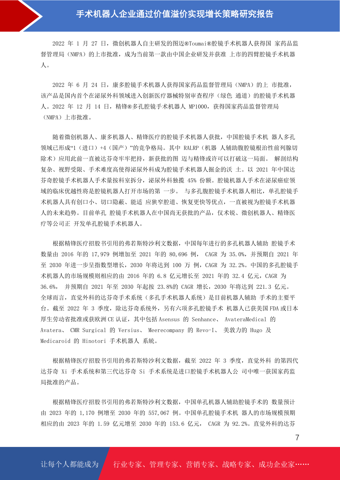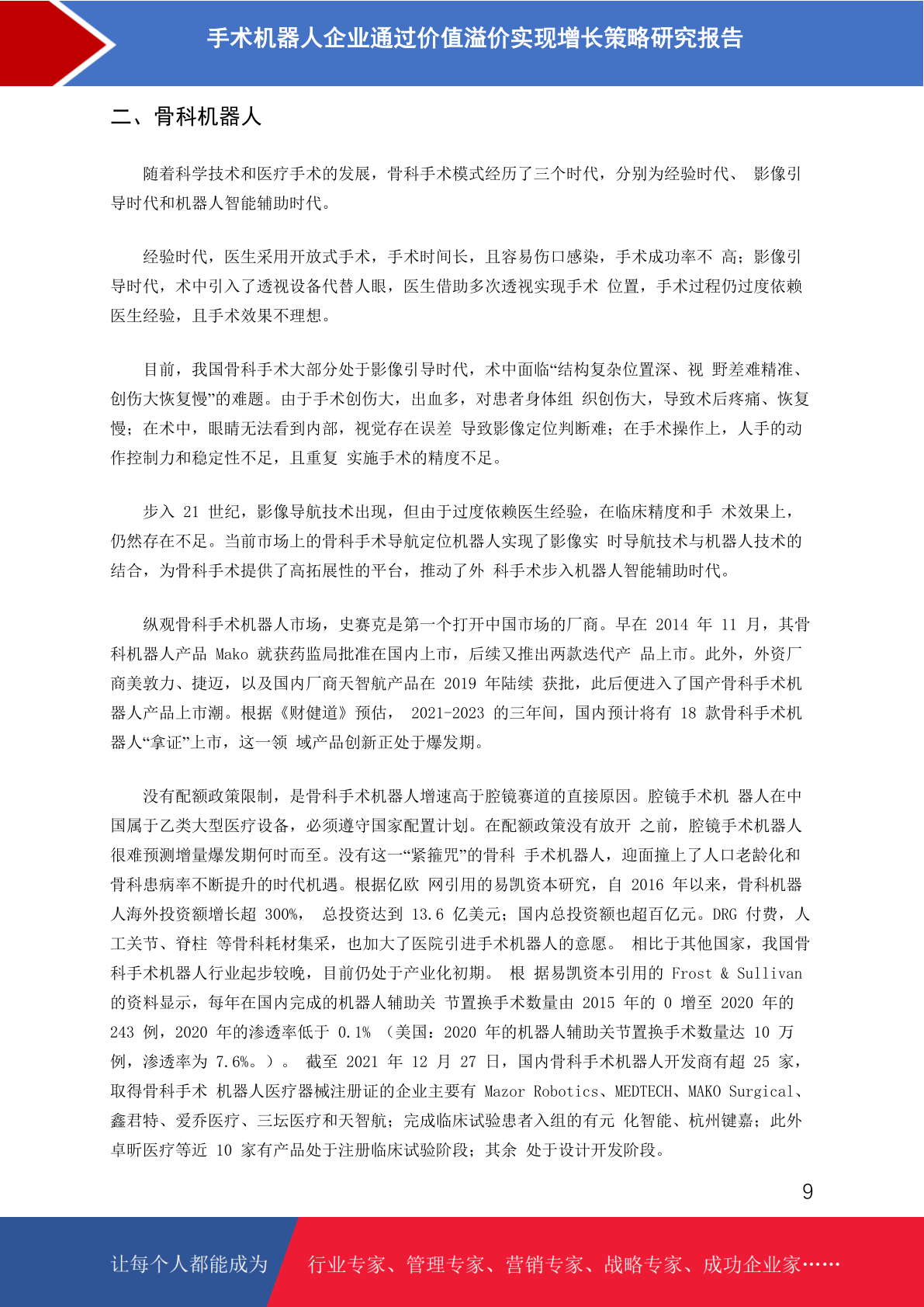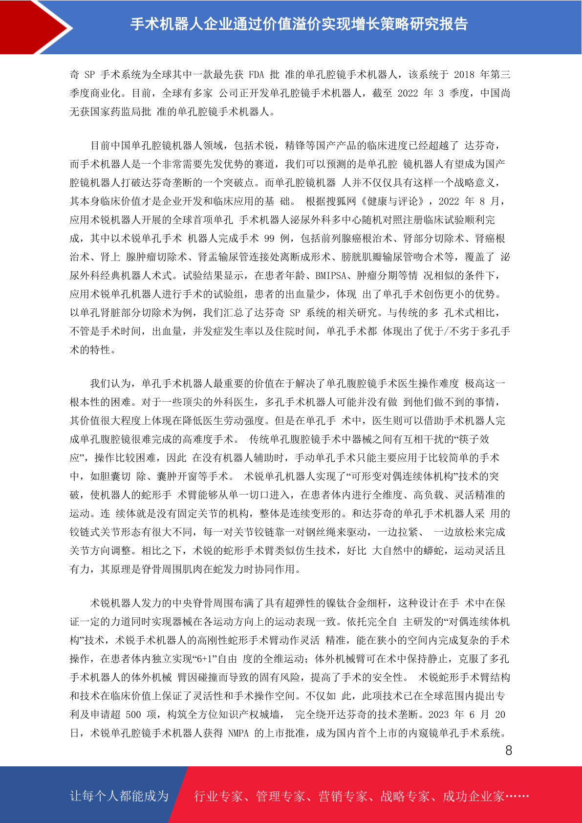手术机器人企业通过价值溢价实现新一轮增长策略研究报告